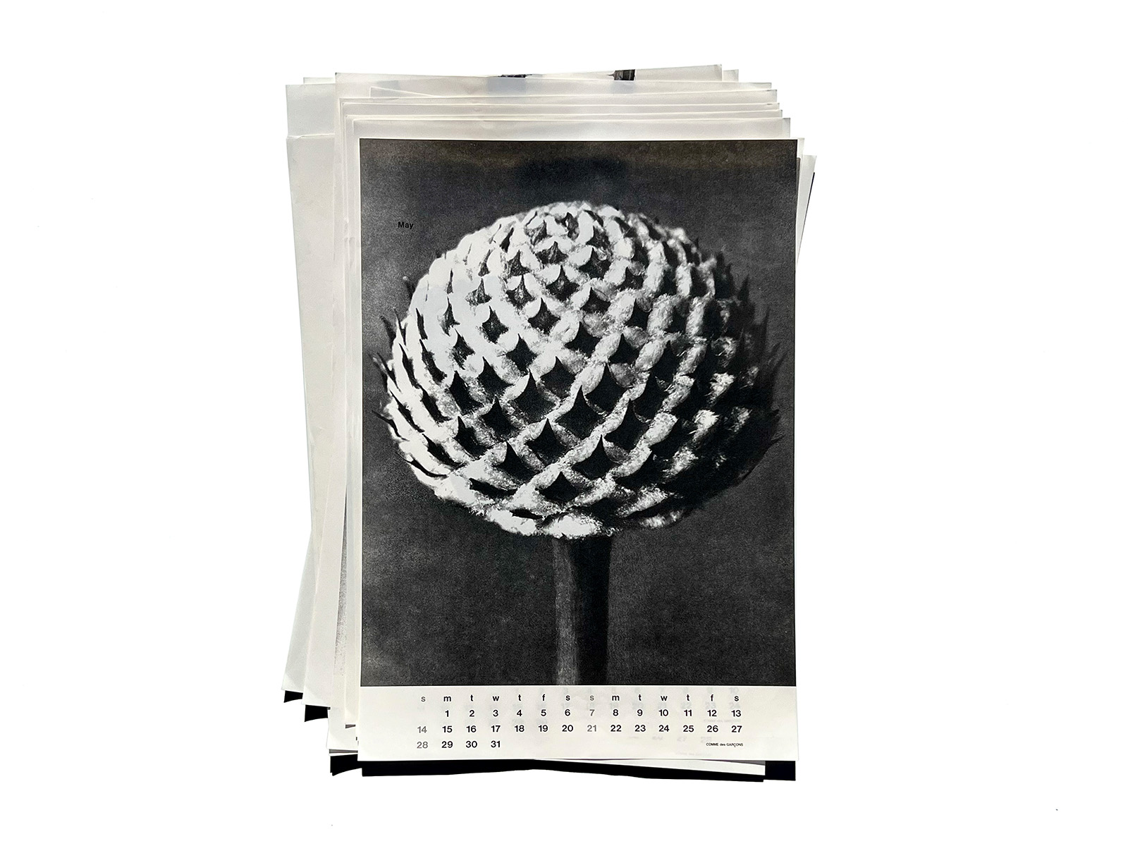 This is the 1989 COMME des GARÇONS calendar, art-directed and designed by Tsuguya Inoue, featuring photographs by the German photographer Karl Blossfeldt.