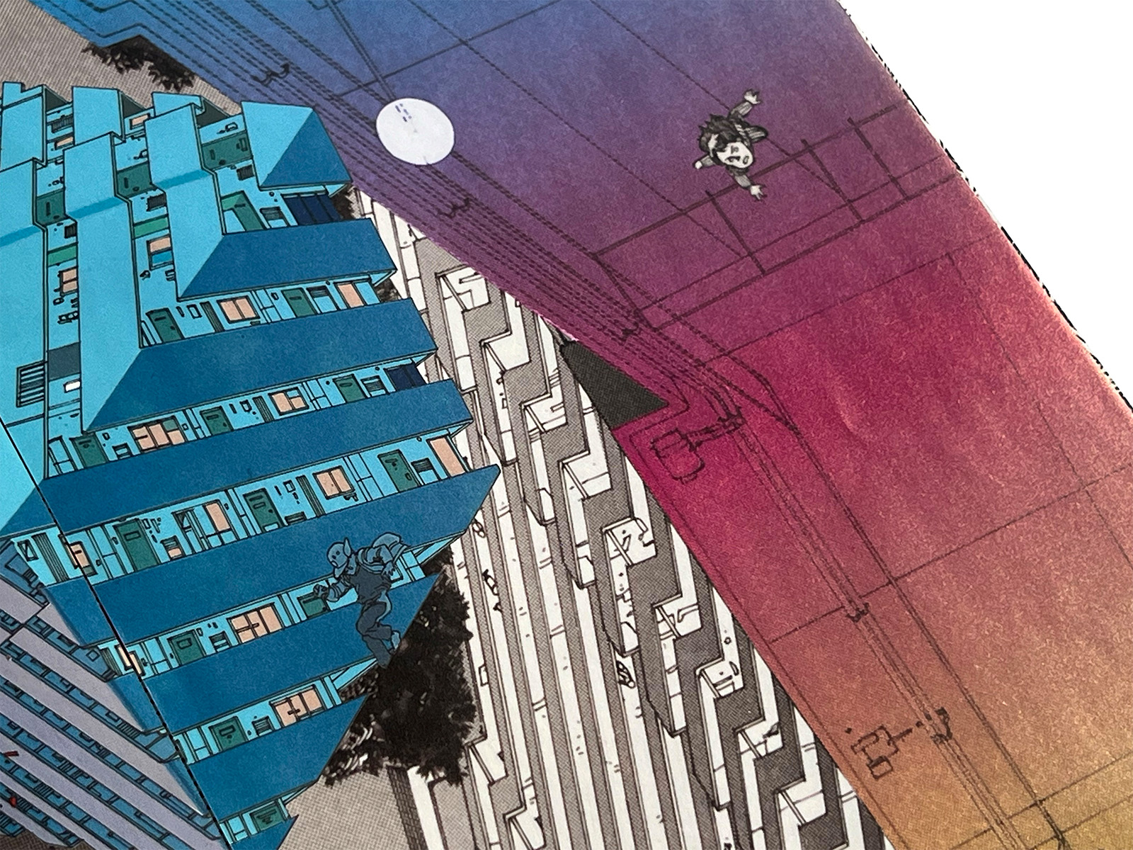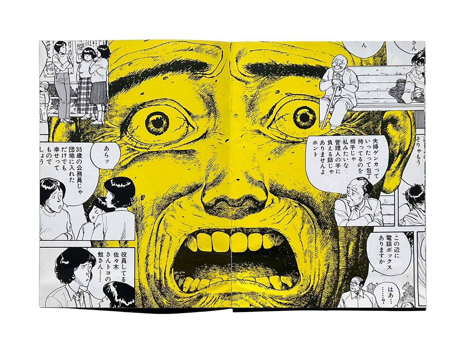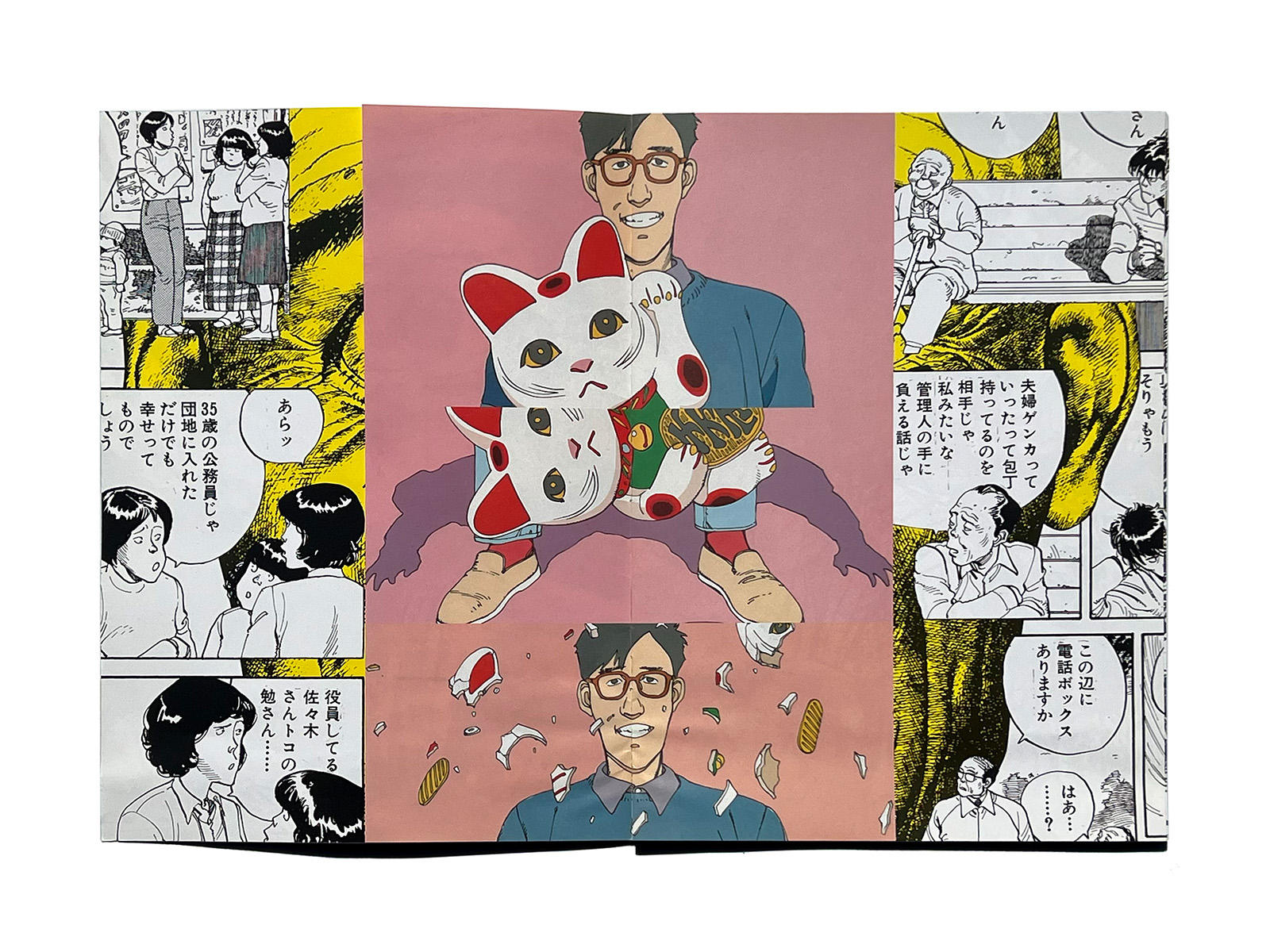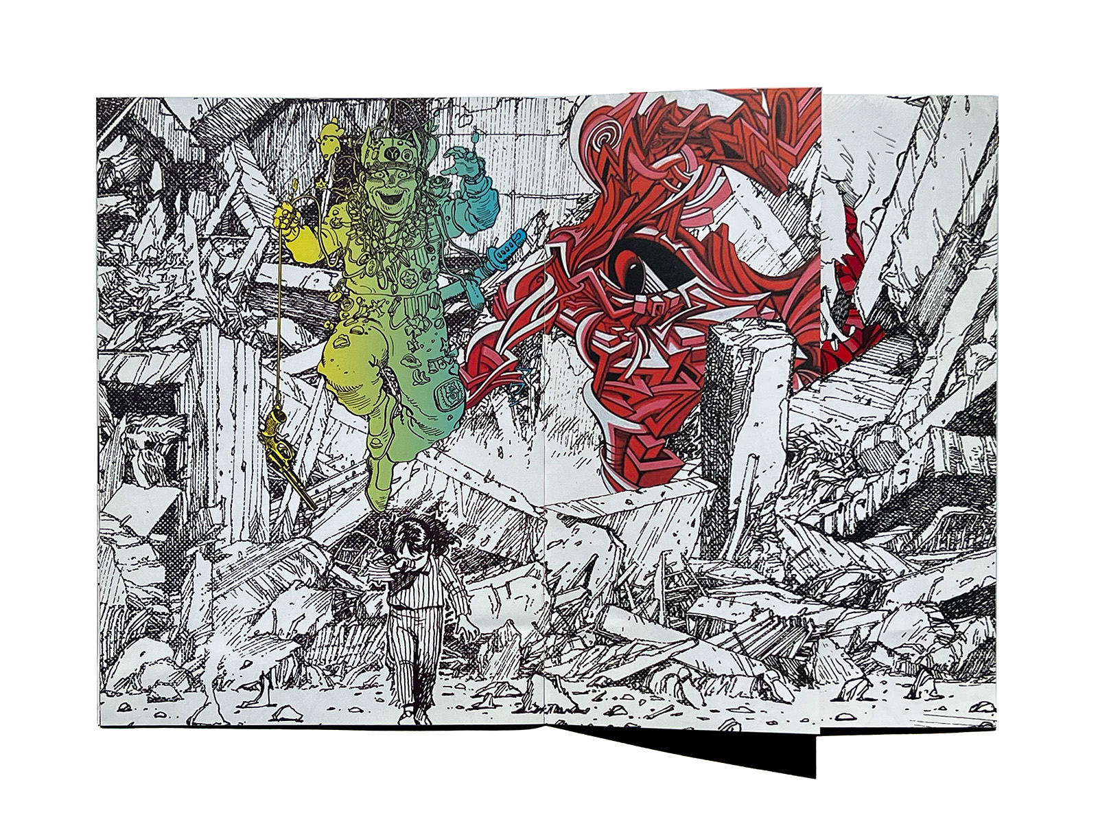 Across its pages, collaged elements include Otomo’s iconic hippo character “Kaba,” along with “Shaka” rendered in acrylic paint.