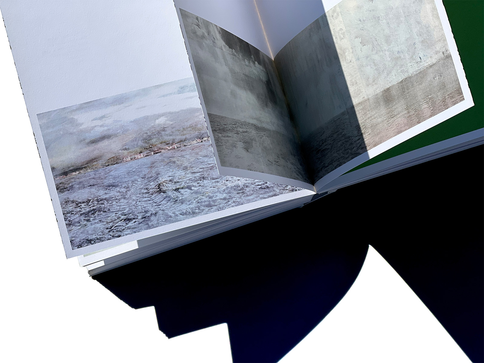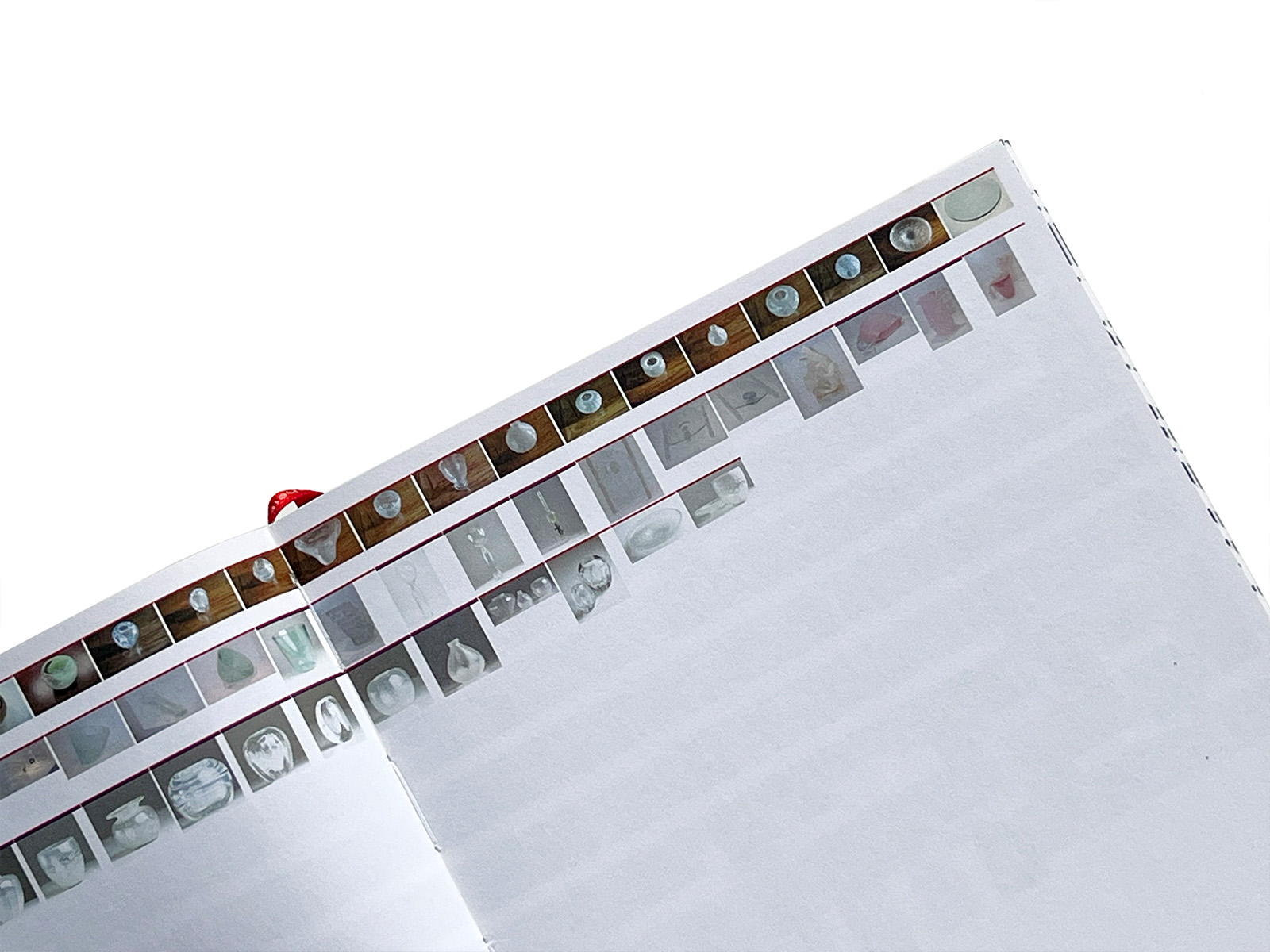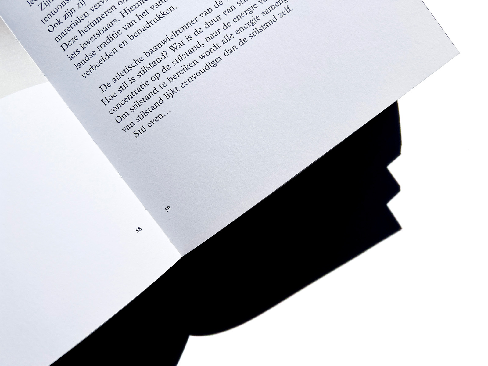Another striking feature of the cover is the alternation of glossy UV varnish and matt laminate, with the title and back cover text in blind debossing. The book’s boards are only a millimetre larger than the block, another unusual feature and a fine example of what the binders, Boekbinderij Van Waarden, are capable of. That the headband had to be sacrificed is something we can live with. Besides, the ribbon bookmark bearing the text ‘Getting you there’ is ample compensation.