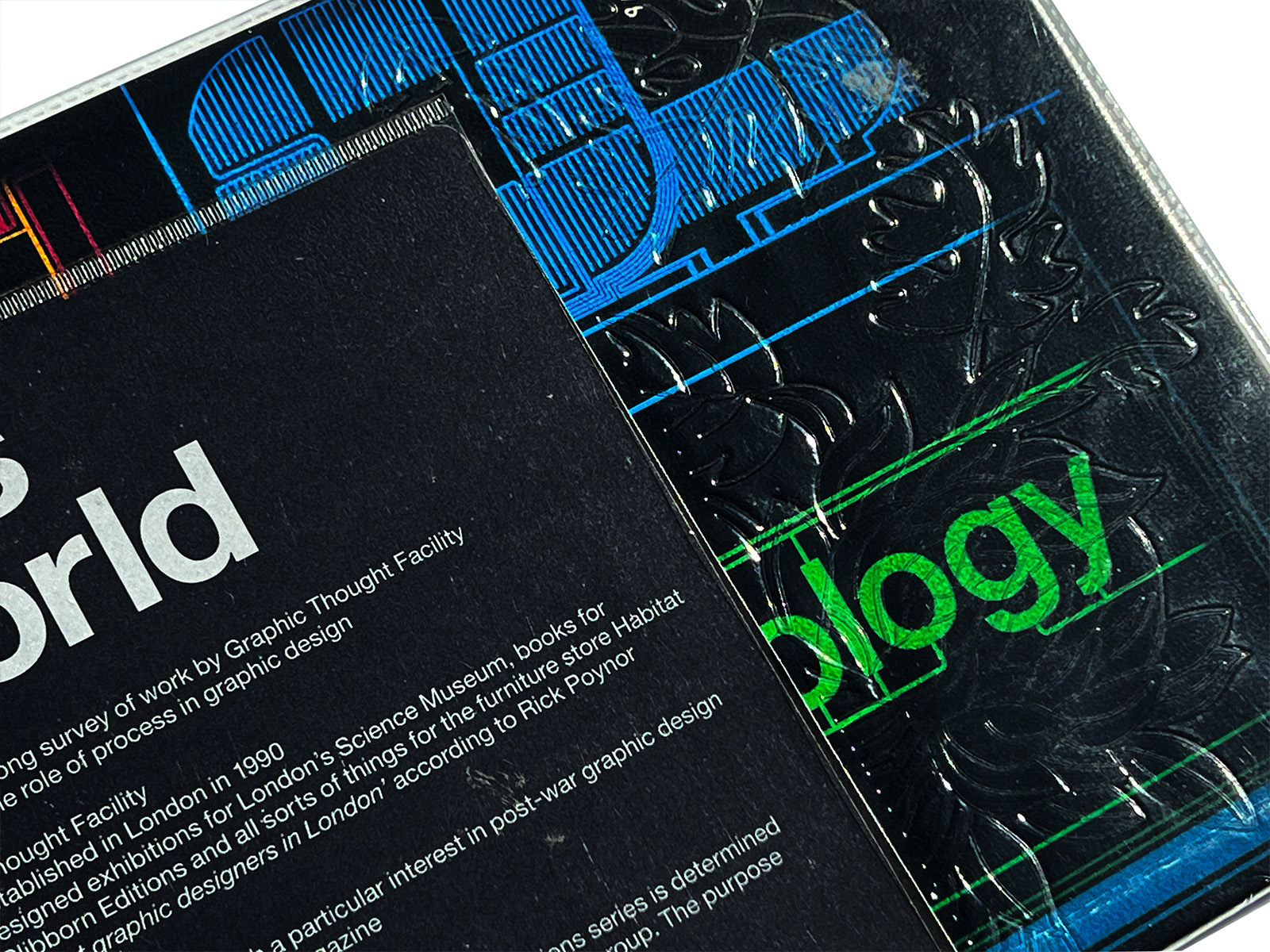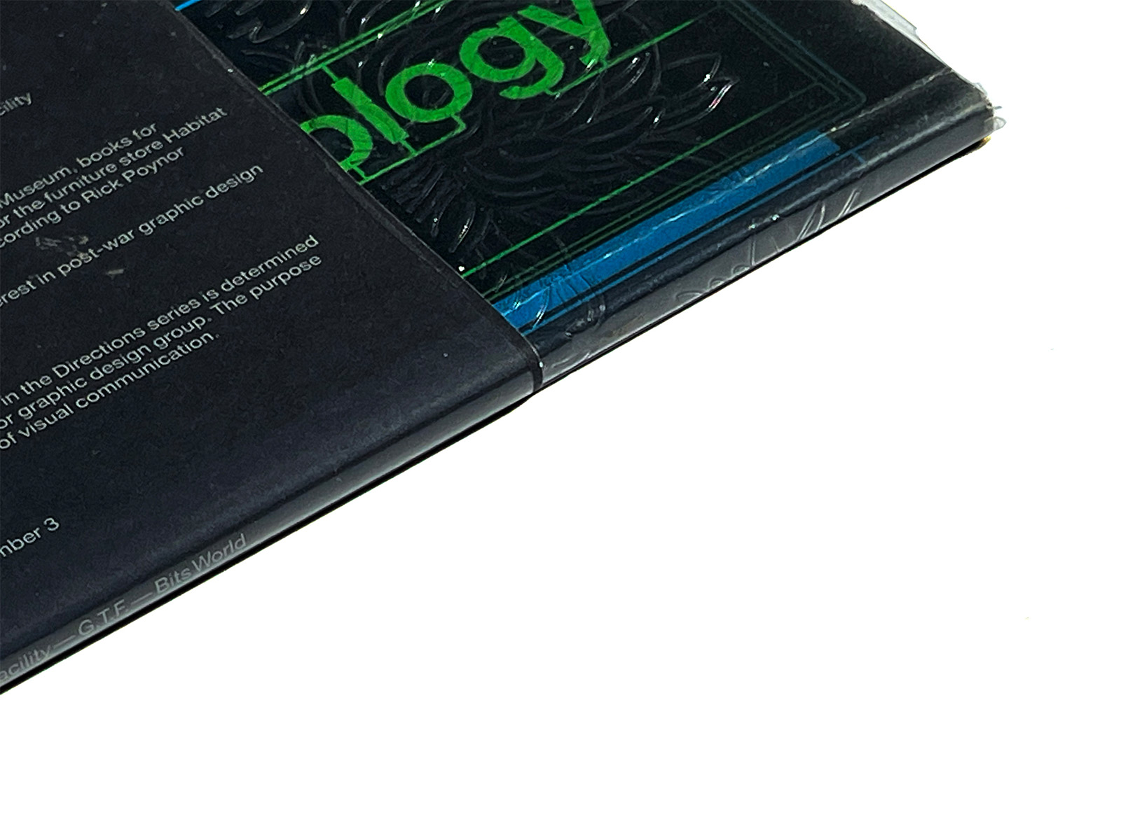 This publication was issued as part of the Bits World series by Graphic Thought Facility (GTF), an experimental design studio based in London. It critically examines how digital technology affects our thinking, perception, and graphic expression.
