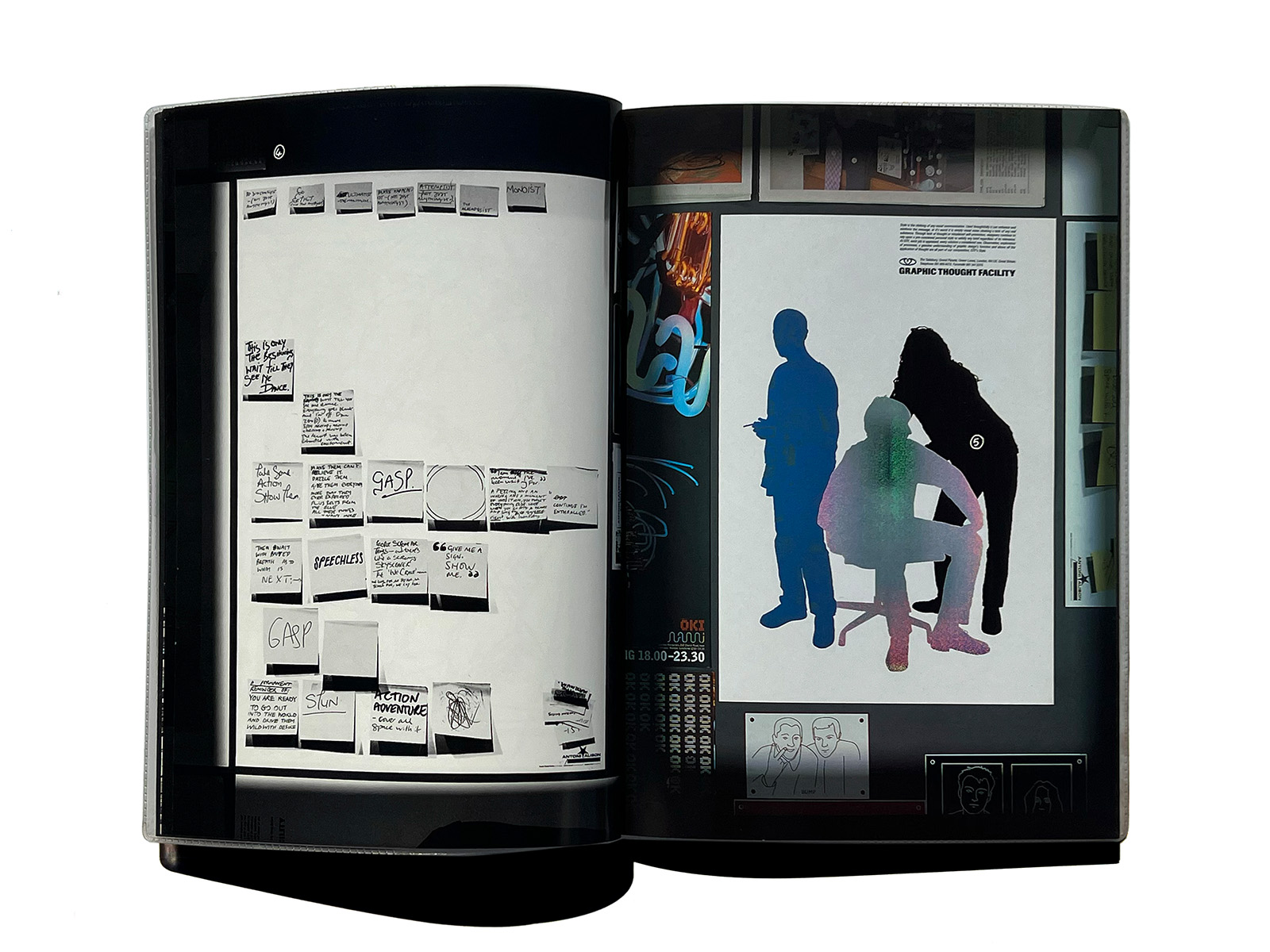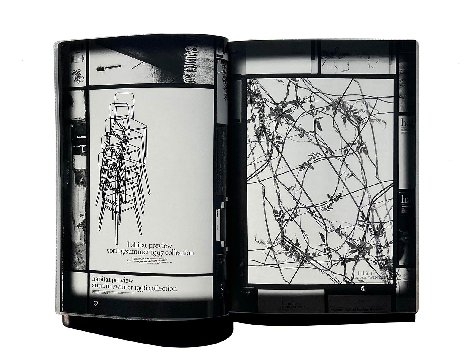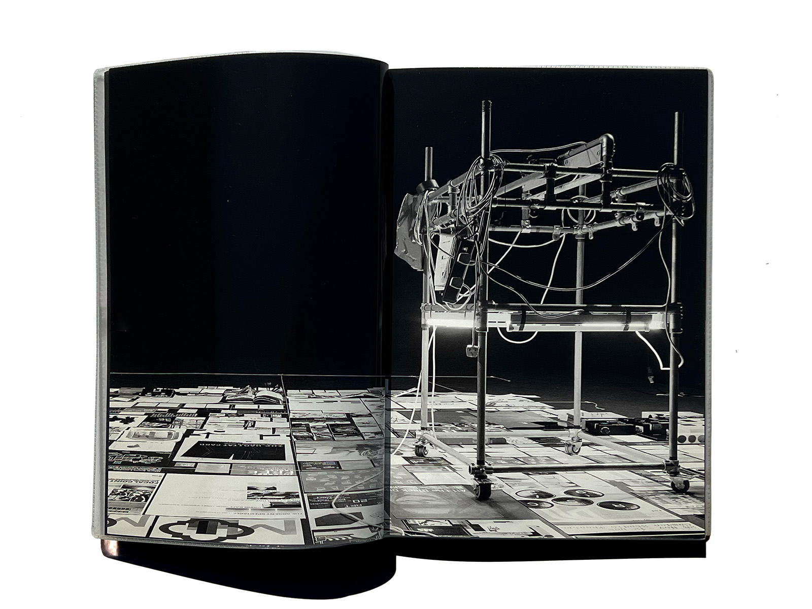 Copies of every past print project were laid out on the floor of a hired film studio and a purpose-built copy camera was rolled across the work. This allowed layout decisions to be made through the camera lens. Once the shots had been taken, the design process was essentially reduced to arranging the images in the right sequence – a relatively easy task.