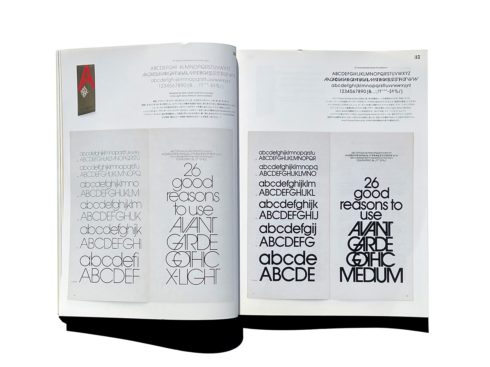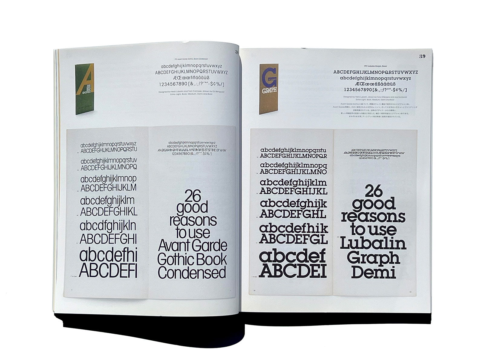 The feature spans nearly 70 pages and includes extensive type specimens of Lubalin’s groundbreaking typefaces, ranging from Avant Garde Gothic to Lubalin Graph and Serif Gothic, highlighting his innovative approach to typography and editorial design.