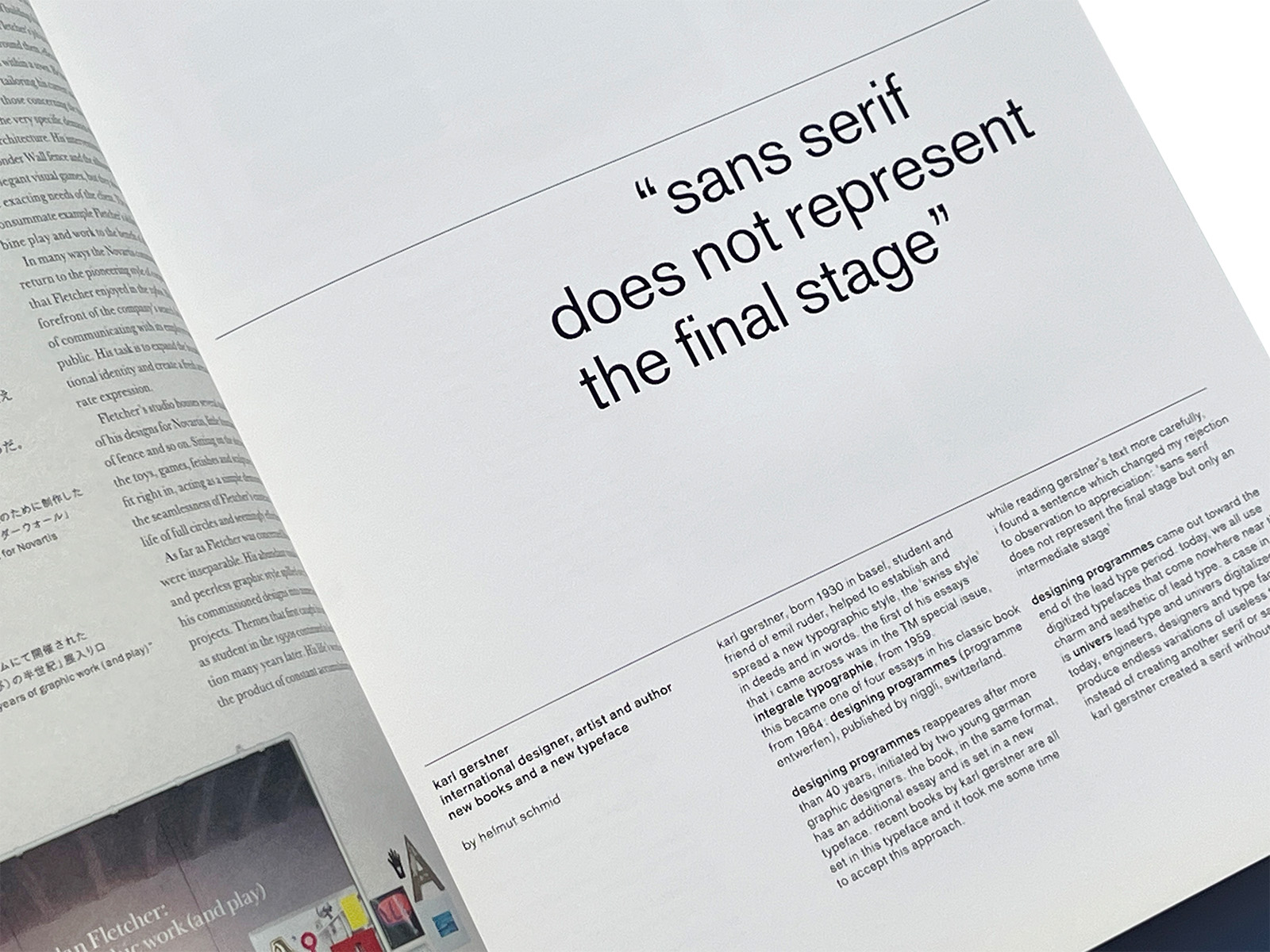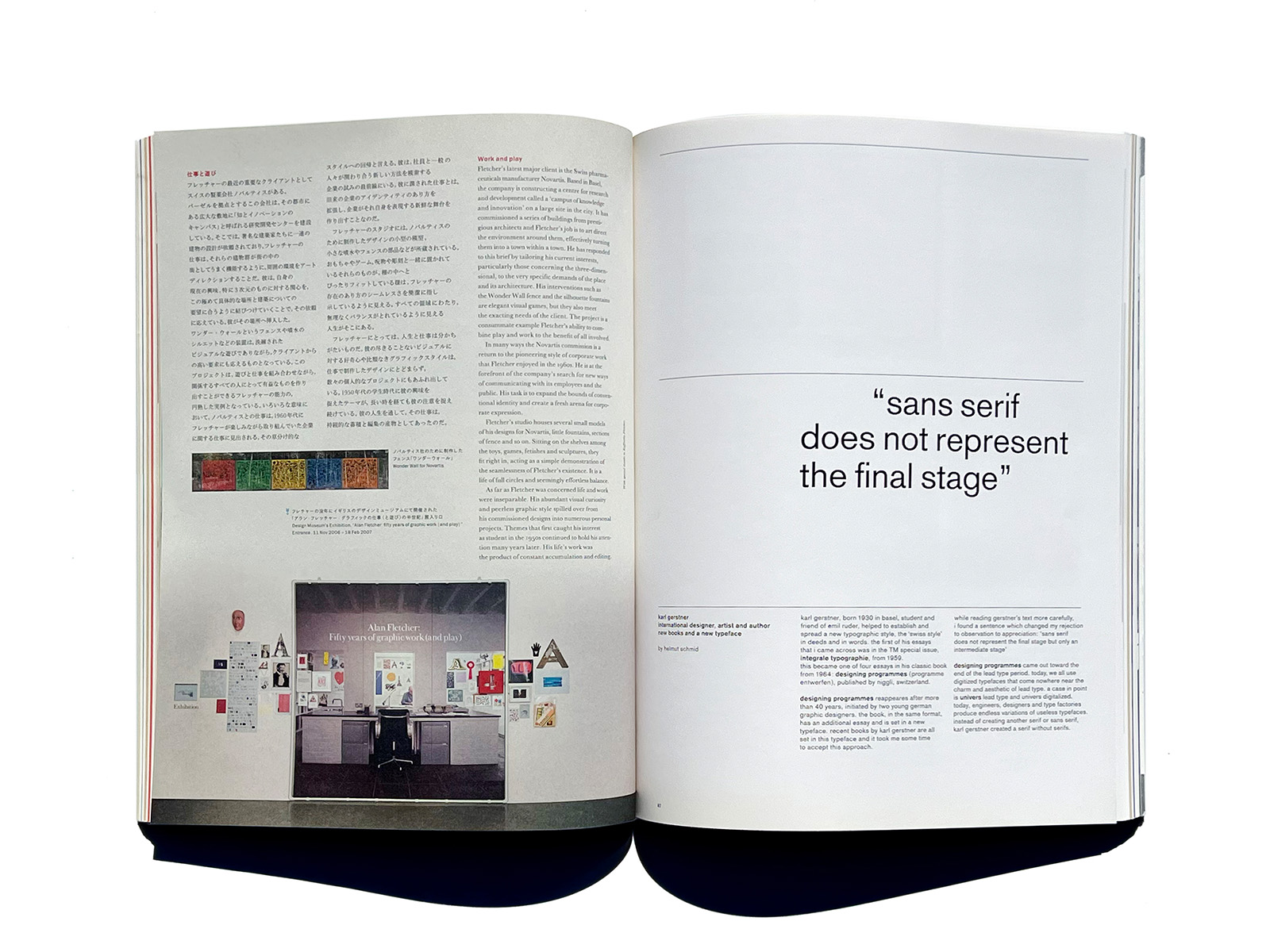 In addition, this oversized issue contains a substantial special feature on the possibilities of new typefaces, with works designed by Alan Fletcher, a founding member of Pentagram, as well as Karl Gerstner.