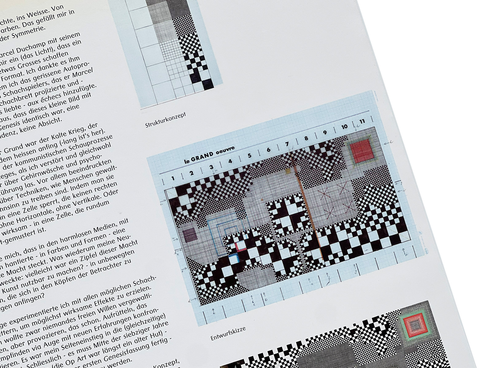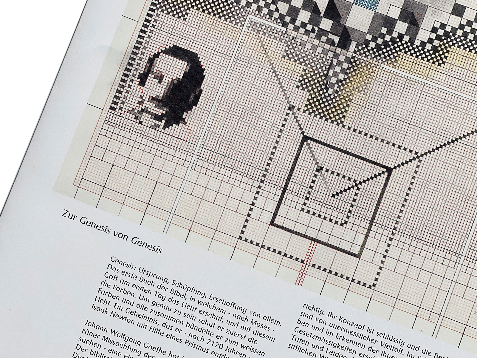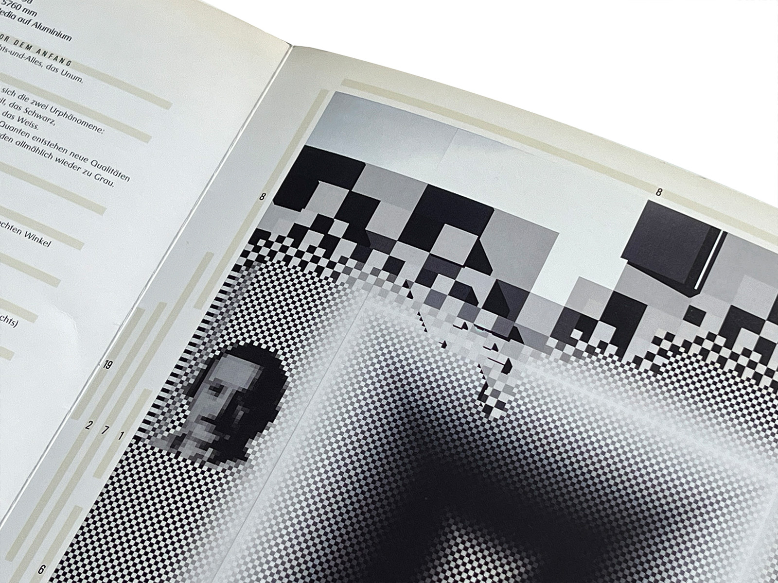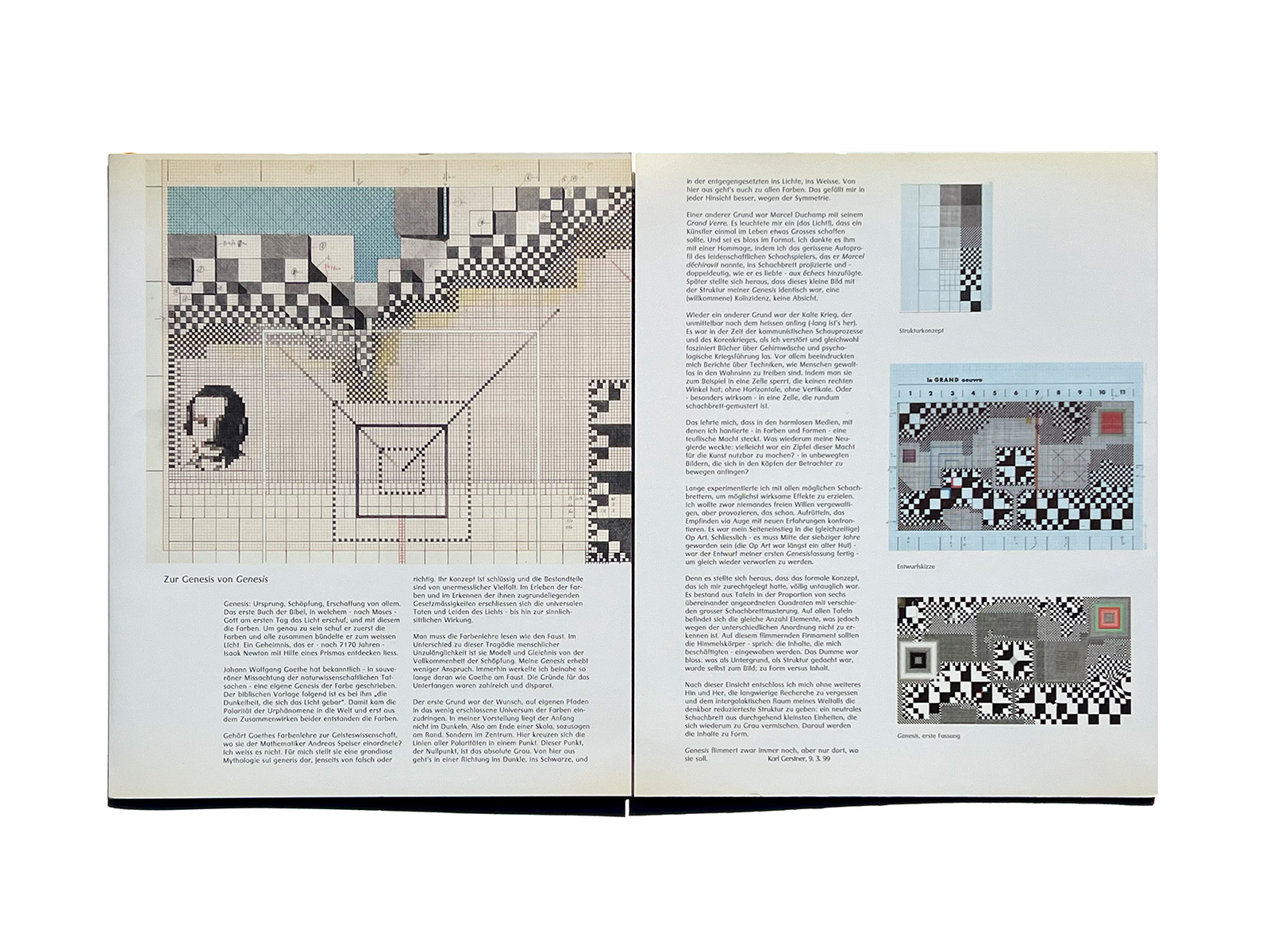The Galerie Beyeler catalogue, written primarily in German, concentrates on Genesis itself, examining in detail the conceptual thinking, visual systems, and structural rules through which the work was generated. Rather than focusing on art-historical references, it foregrounds the internal process by which the work came into being.