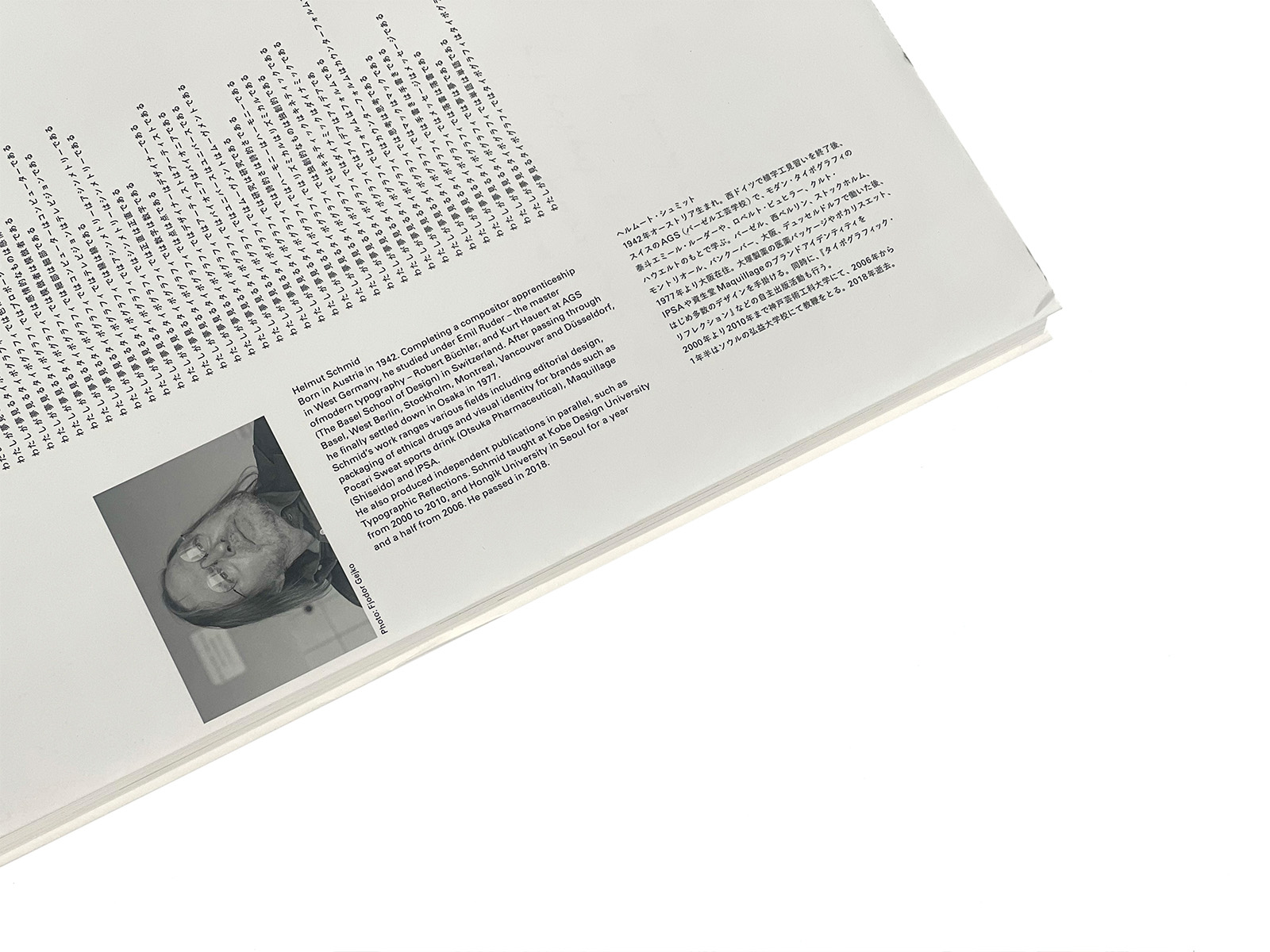 戦後スイス・タイポグラフィの精神を発展させ、70年代から大阪を拠点に国際的なデザイン活動を続けたヘルムート・シュミット。バーゼルと日本をタイポグラフィによってつなげたシュミットによる著作を集めたものです