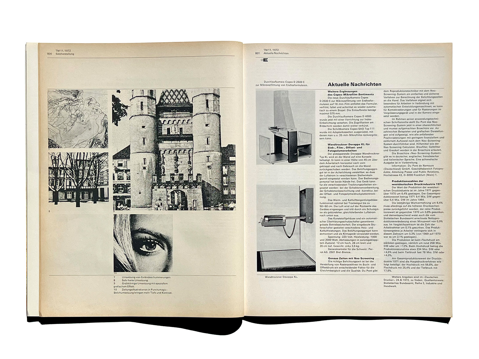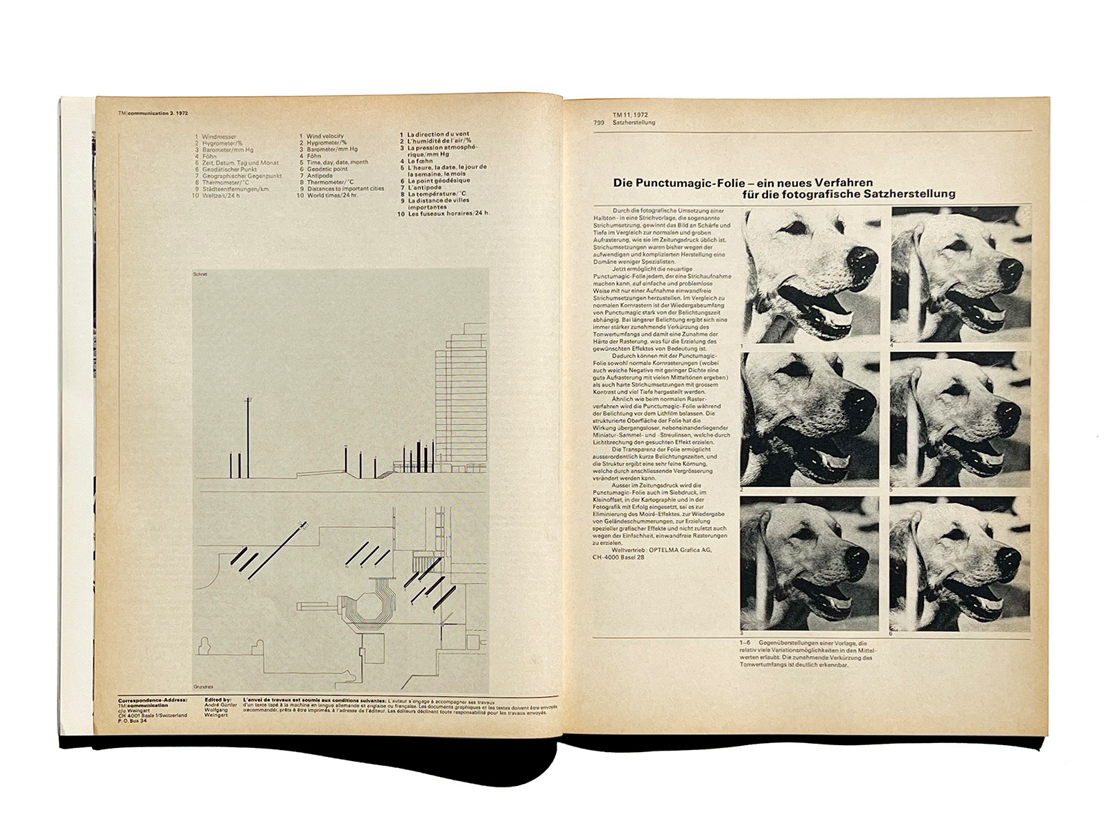 Typographische Monatsblätter (Typographic Monthly Sheets), TM, was founded in 1933 by the ‘‘Schweizerischer Typographenbund, Bern’’ (Swiss Typographic Society, Bern).
