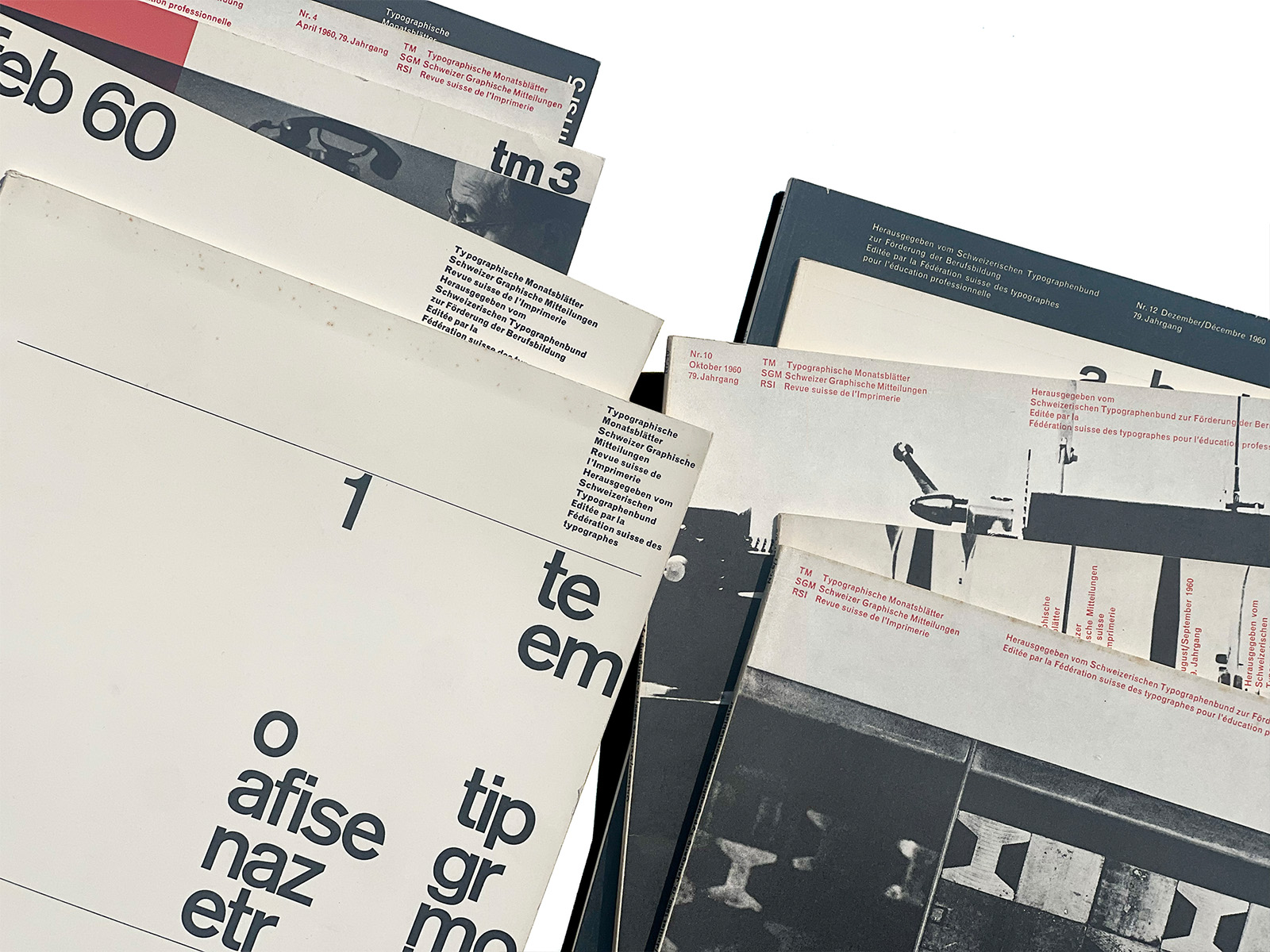 Typographische Monatsblätter (Typographic Monthly Sheets), TM, was founded in 1933 by the ‘‘Schweizerischer Typographenbund, Bern’’ (Swiss Typographic Society, Bern).