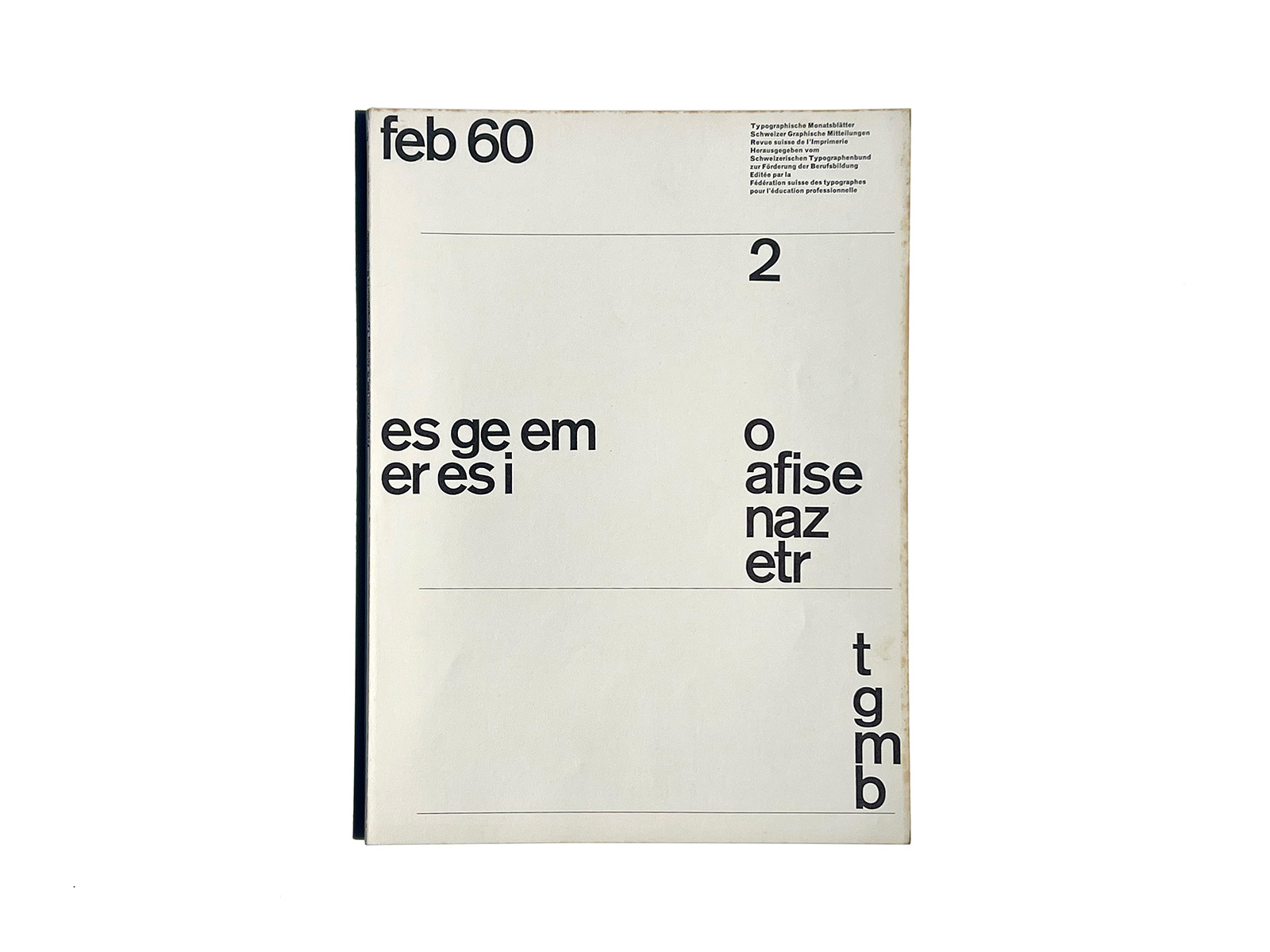Typographische Monatsblätter (Typographic Monthly Sheets), TM, was founded in 1933 by the ‘‘Schweizerischer Typographenbund, Bern’’ (Swiss Typographic Society, Bern).