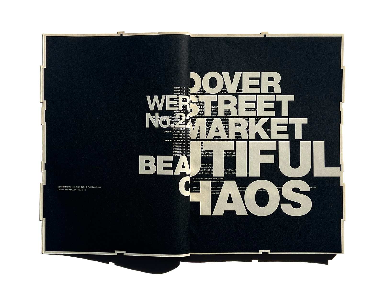 Theseus Chanは、独創性あふれるインディペンデント・マガジン『WERK(ヴェルク)』で知られています。2000年に創刊された『WERK』は、毎号800~1,000部限定で制作されており、1部ごとに表情が異なるほど手の込んだものです。