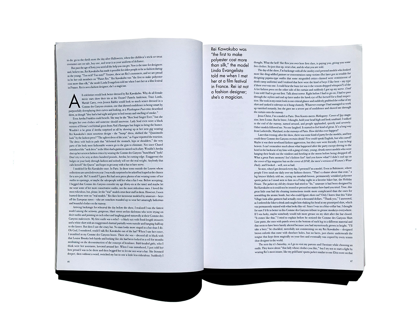 In 2010, in its 20th issue, 032c, published in Berlin by Jorg Koch, devoted a 40-page special feature to Rei Kawakubo and Comme des Garçons.