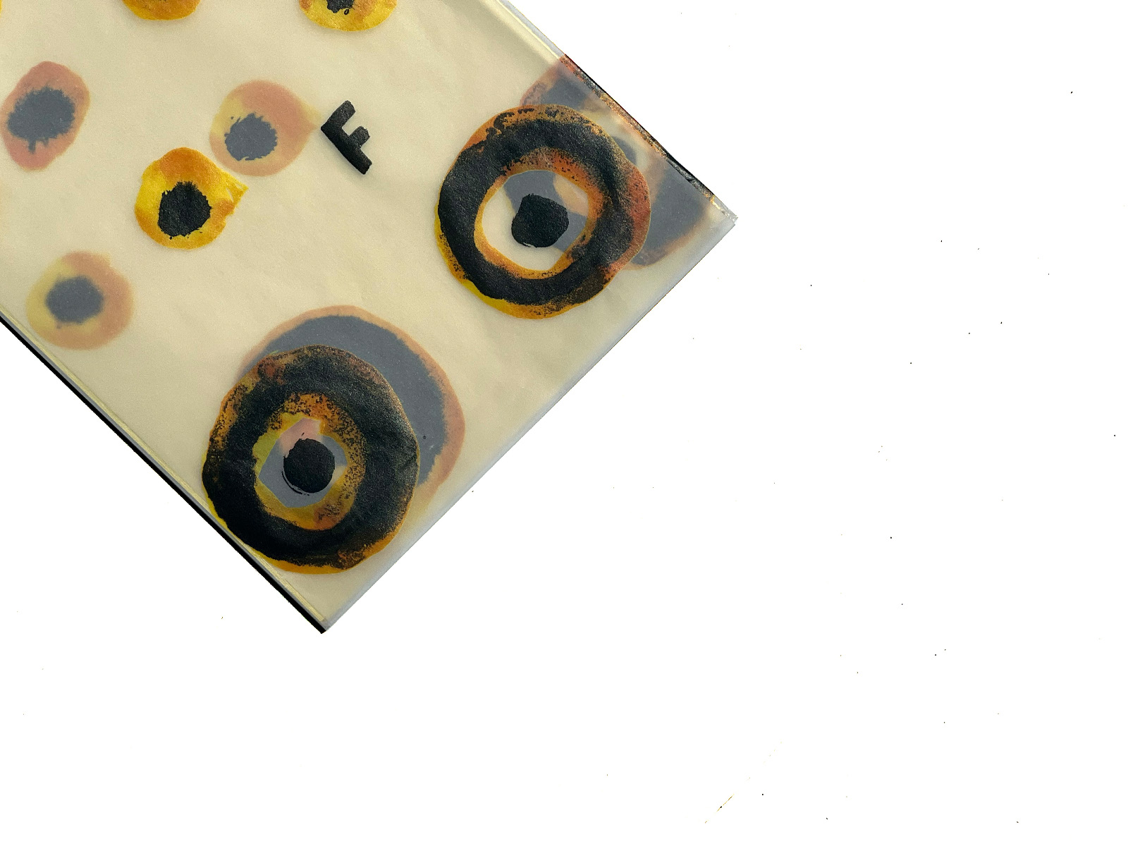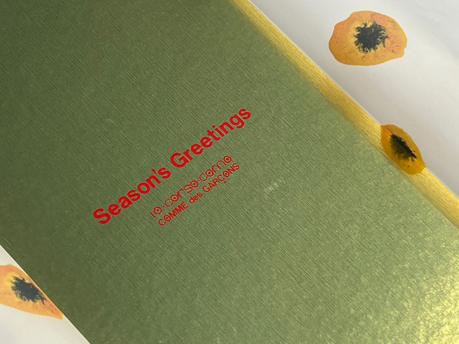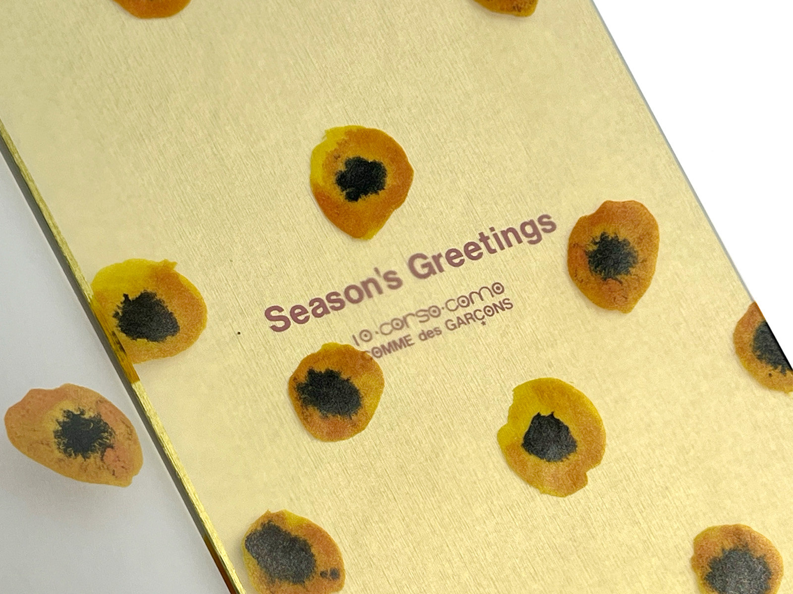 Filip Pagowski’s dots artworks are printed on tracing paper and wrapped around a vertical gold card.
