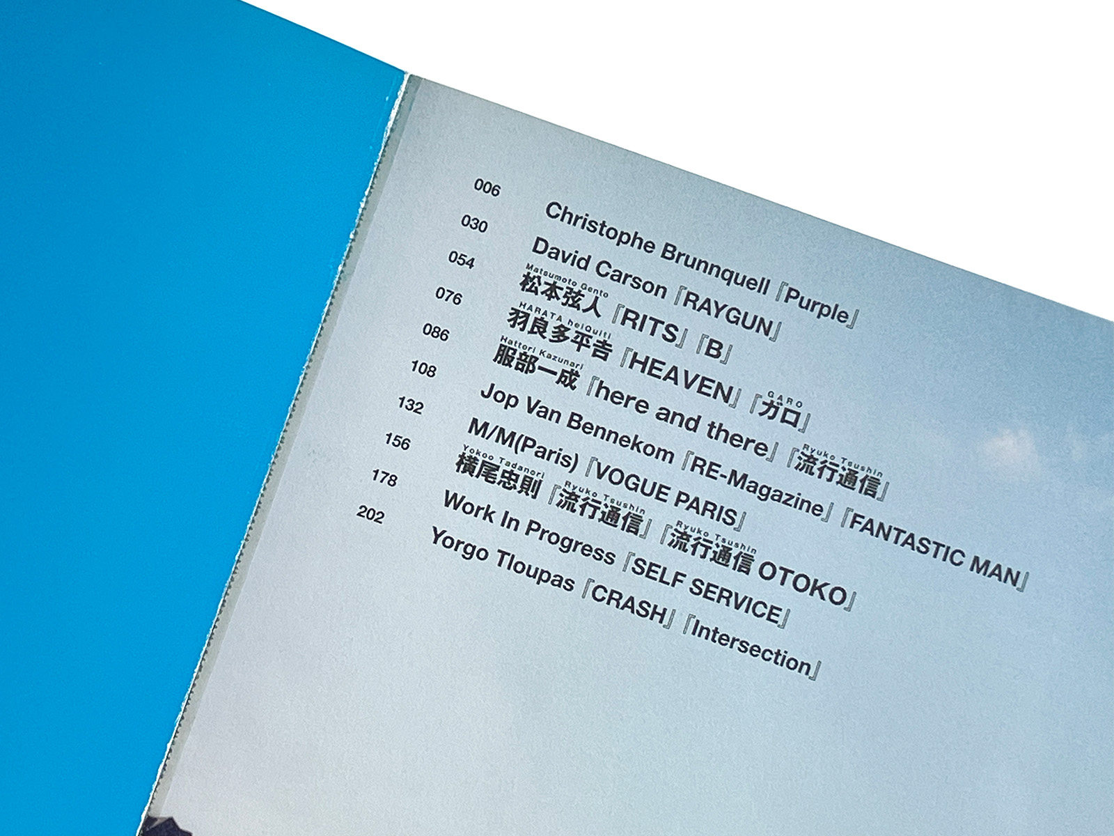 Through bilingual interviews (in both English and Japanese), portraits, and in-depth analyses of iconic layouts, the book examines how each figure reshaped the visual language of magazines. Featured creators include Christophe Brunnquell (Purple), David Carson (RAYGUN), Gento Matsumoto, Heikichi Harata, Issei Hattori, Jop van Bennekom, M/M (Paris), Tadanori Yokoo, Work in Progress (SELF SERVICE), and Yorgo Tloupas (CRASH, Intersection).