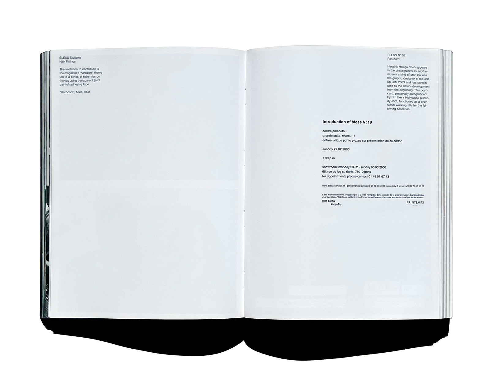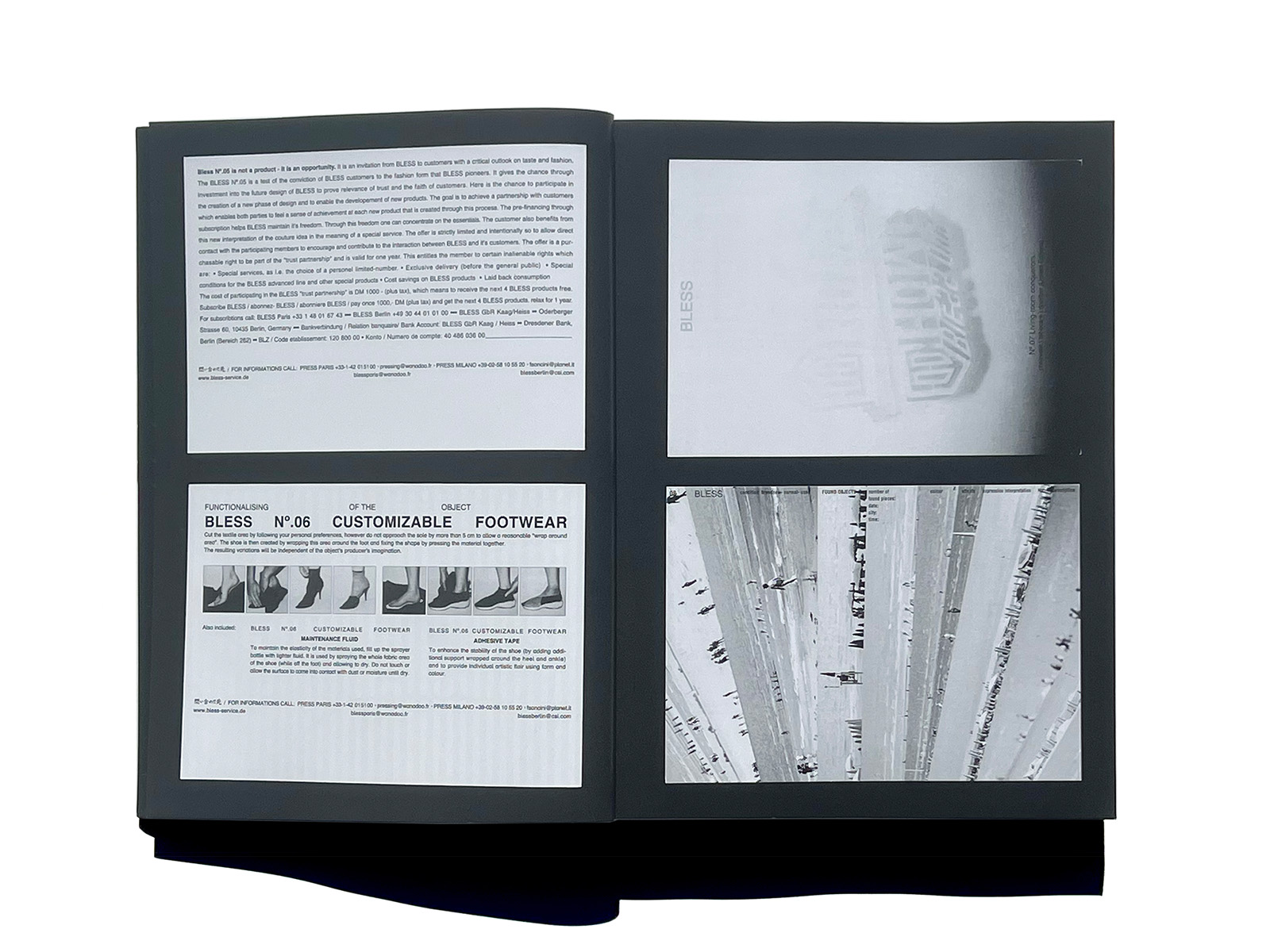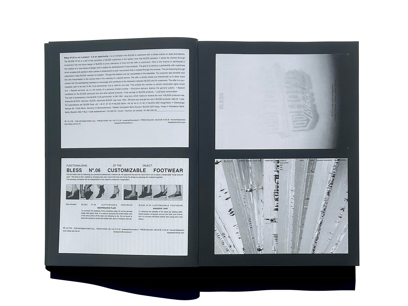 For author Barbara Steiner, “by addressing the fields of both fashion and art, including the overlapping zones, and once again confounding any attempt at classification, Bless reveals the contradictions and conflicts that underlie economic and artistic interests, and above all their reciprocal relationship. Ambiguity, contingency and instability become the constituents of a practice that is based on multiple focal points as a means of probing possibilities of external versus self-determination, commercial success versus critical reflection and incorporation versus resistance.”