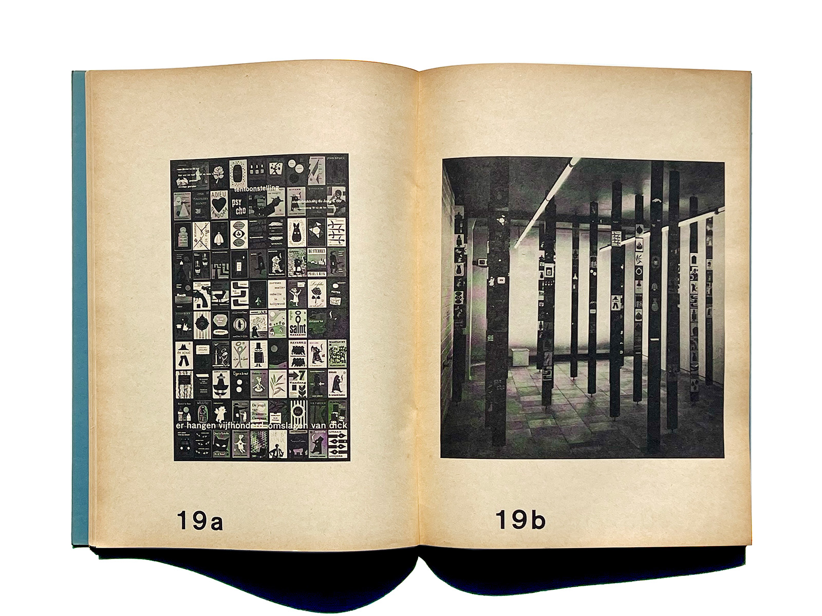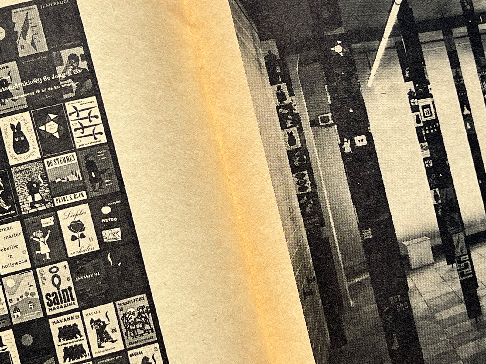The exhibition included Quadrat-Prints produced by De Jong & Co., advertising designs by GKf, and book cover designs by Dick Bruna, among other works.