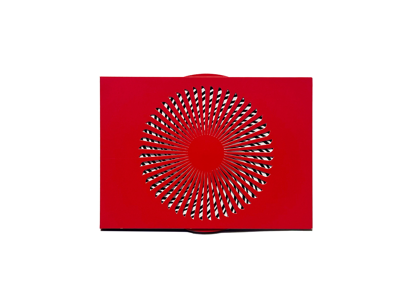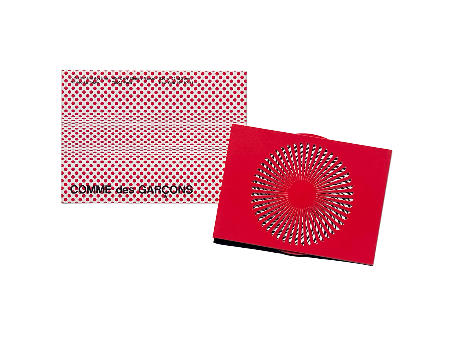 This direct mail set consists of two cards: one featuring a kaleidoscopic mechanism that evokes dynamic graphic movement, and another with a dot pattern.