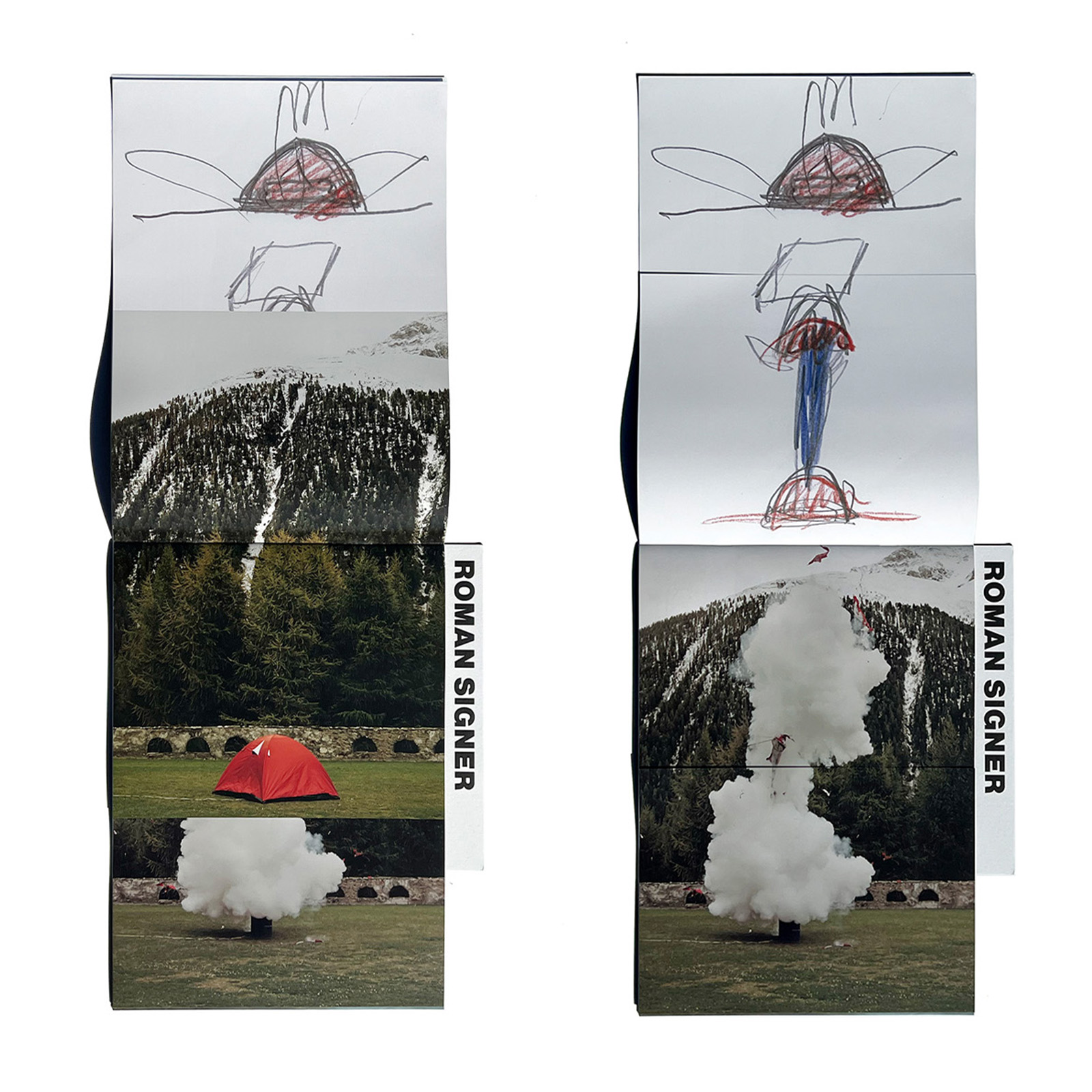 In addition to Roman Signer’s striking installation photographs, the volumes include numerous sketches that offer a rare glimpse into his creative process. A remarkable and highly collectible ensemble, this set blurs the line between commercial ephemera and the artist’s book.