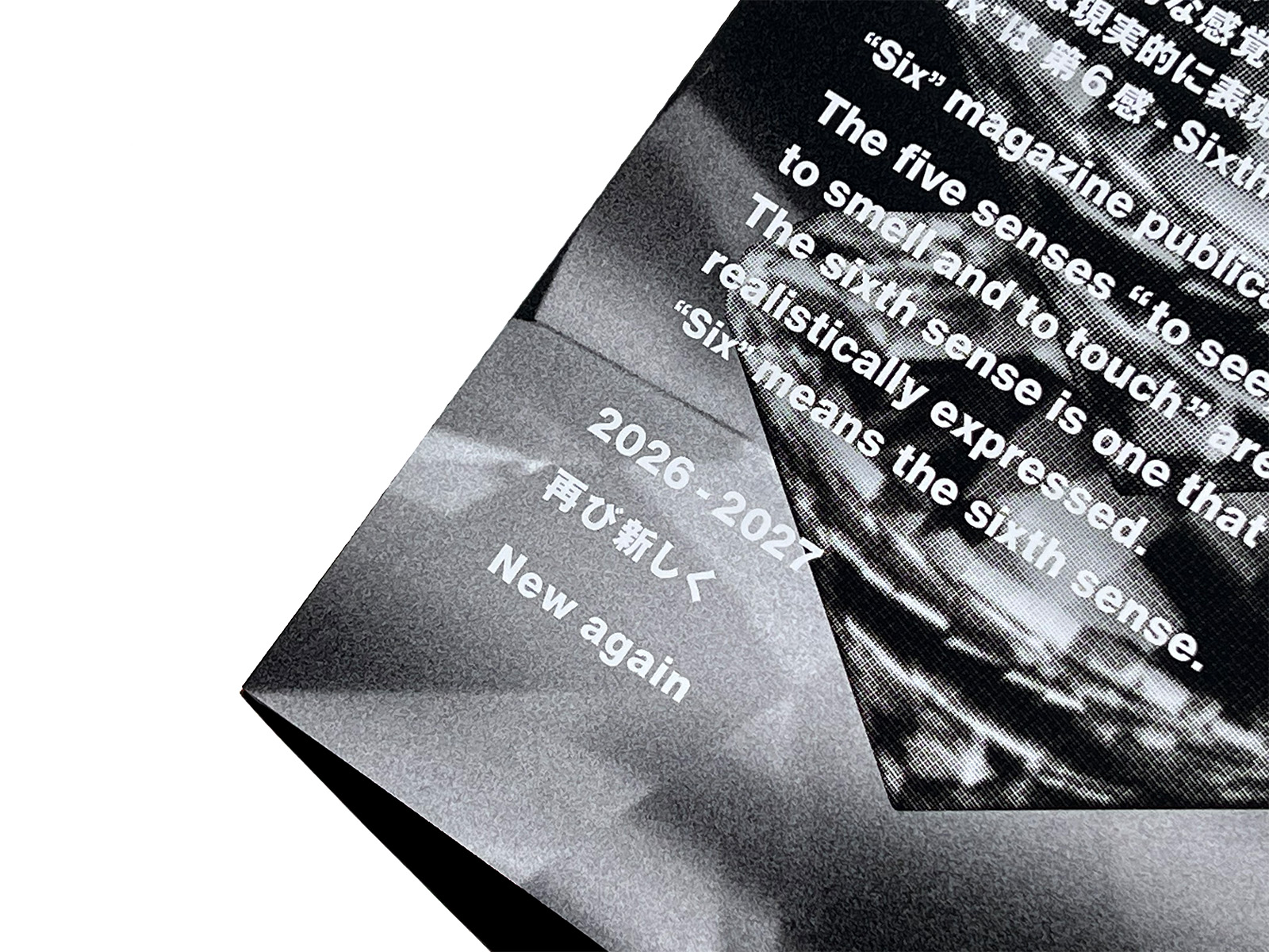 Six (Sixth Sense) is a magazine published by Comme des Garçons from 1988 to 1991 with issues 1 to 8. Consisting of a wide range of themes such as art, fashion, photography, design, and literature, each issue includes stimulating visuals and text.