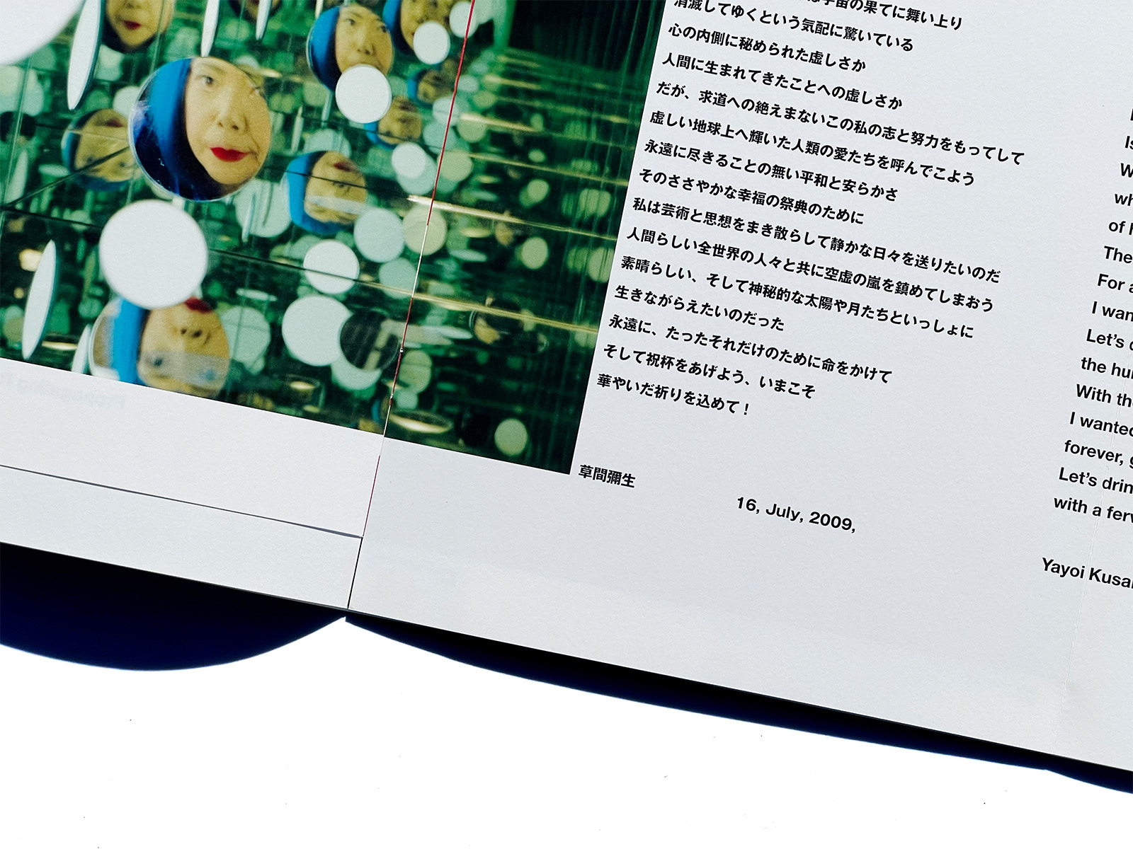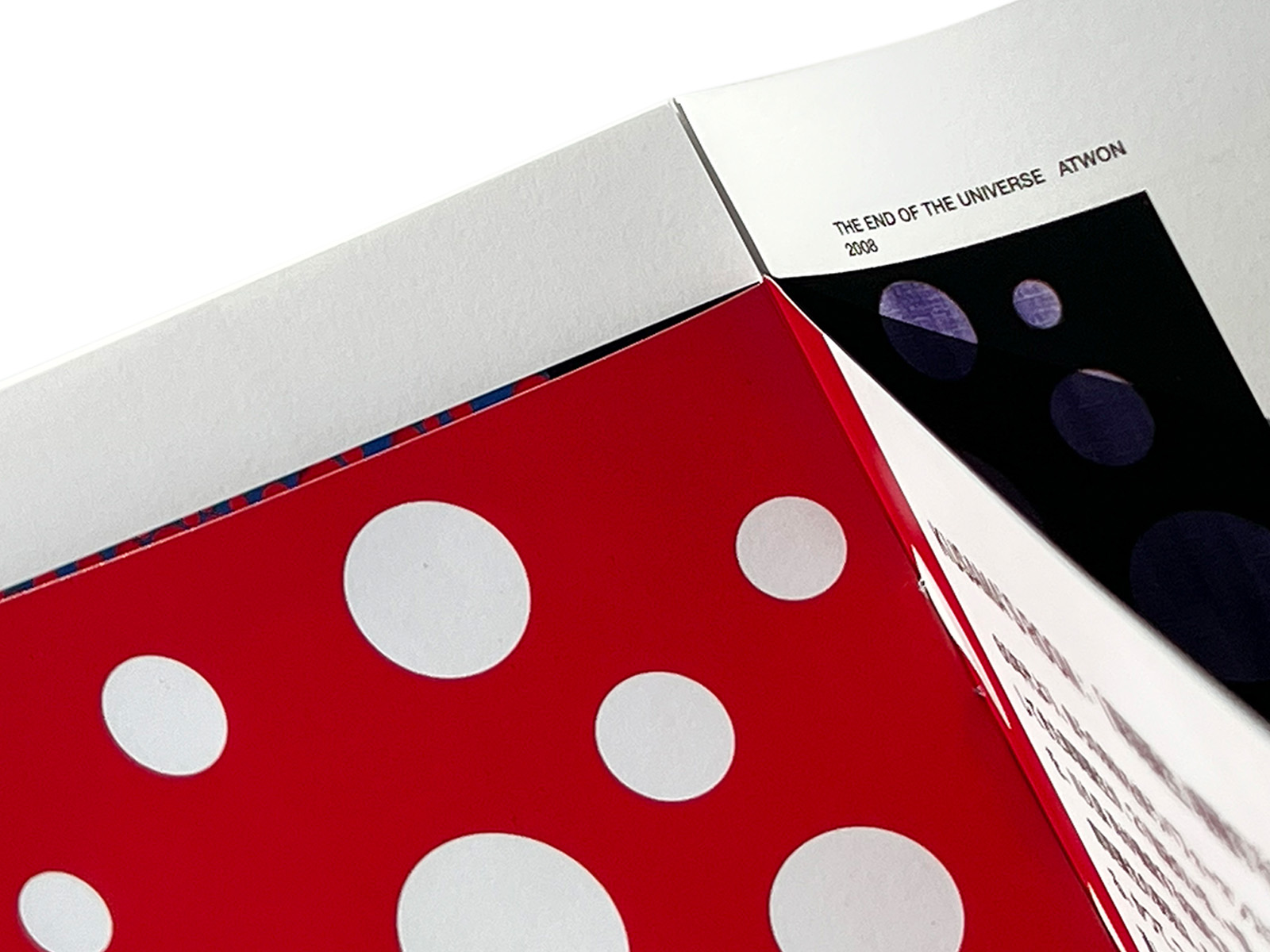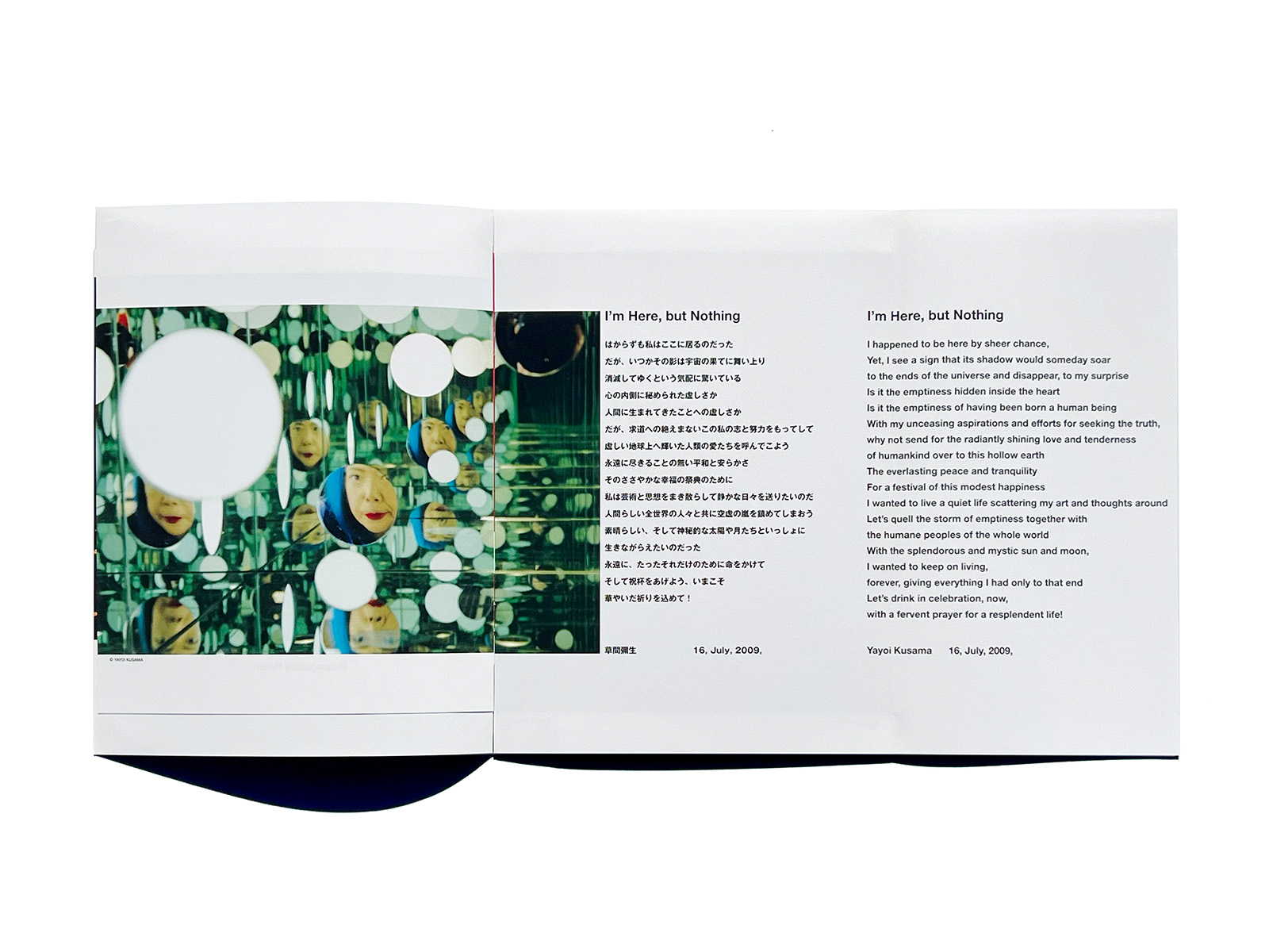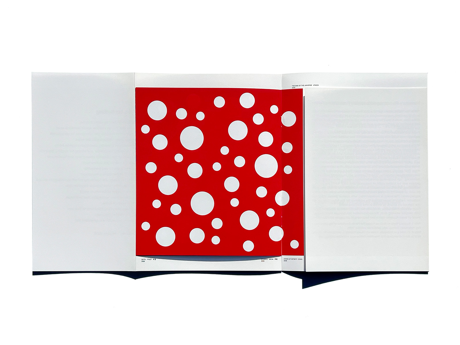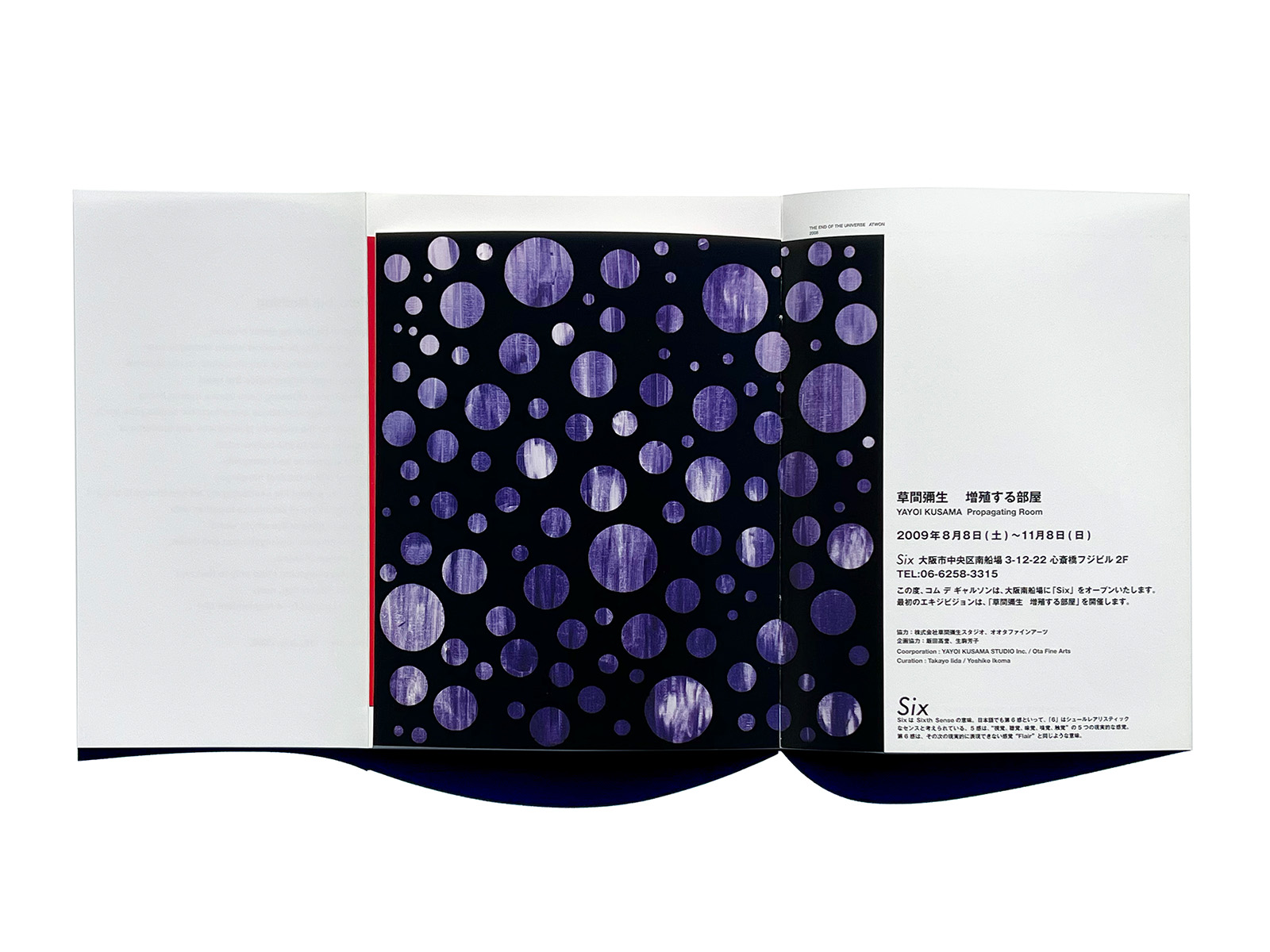 This piece is the invitation—which also functioned as the DM—for the very first exhibition, Yayoi Kusama’s Propagating Room.