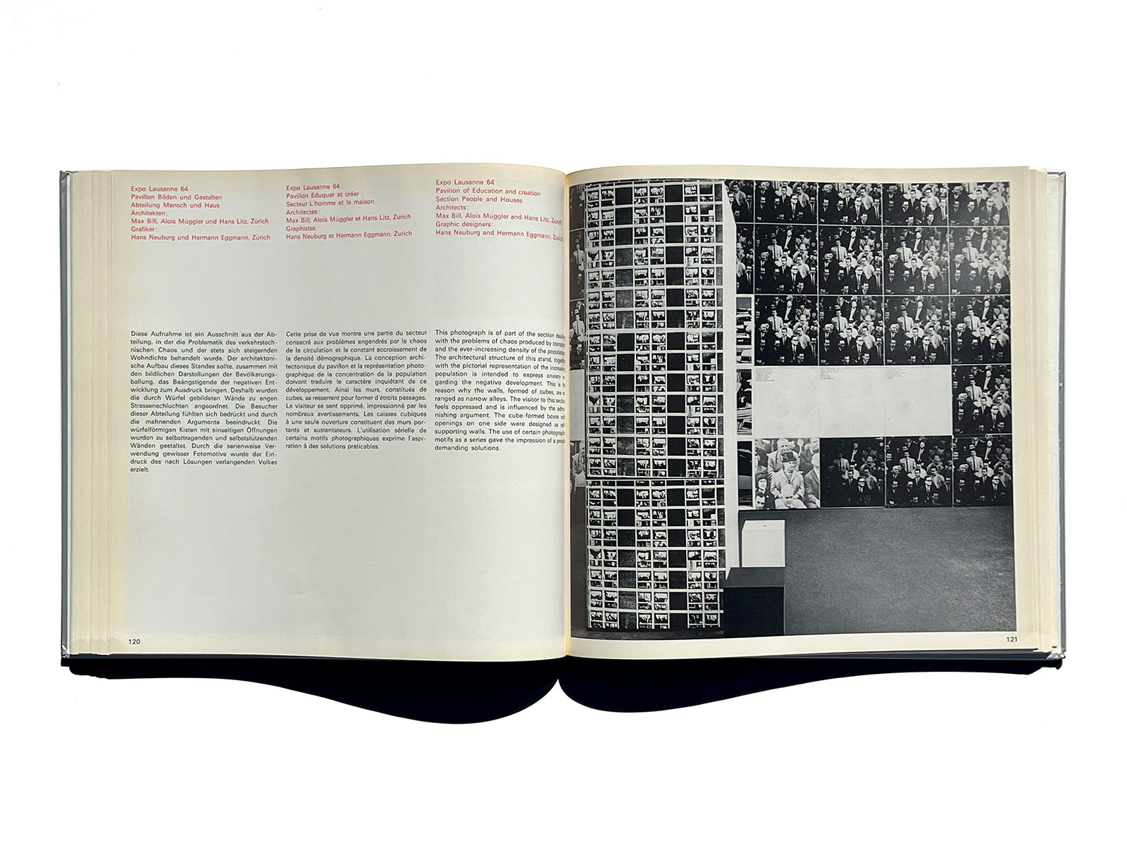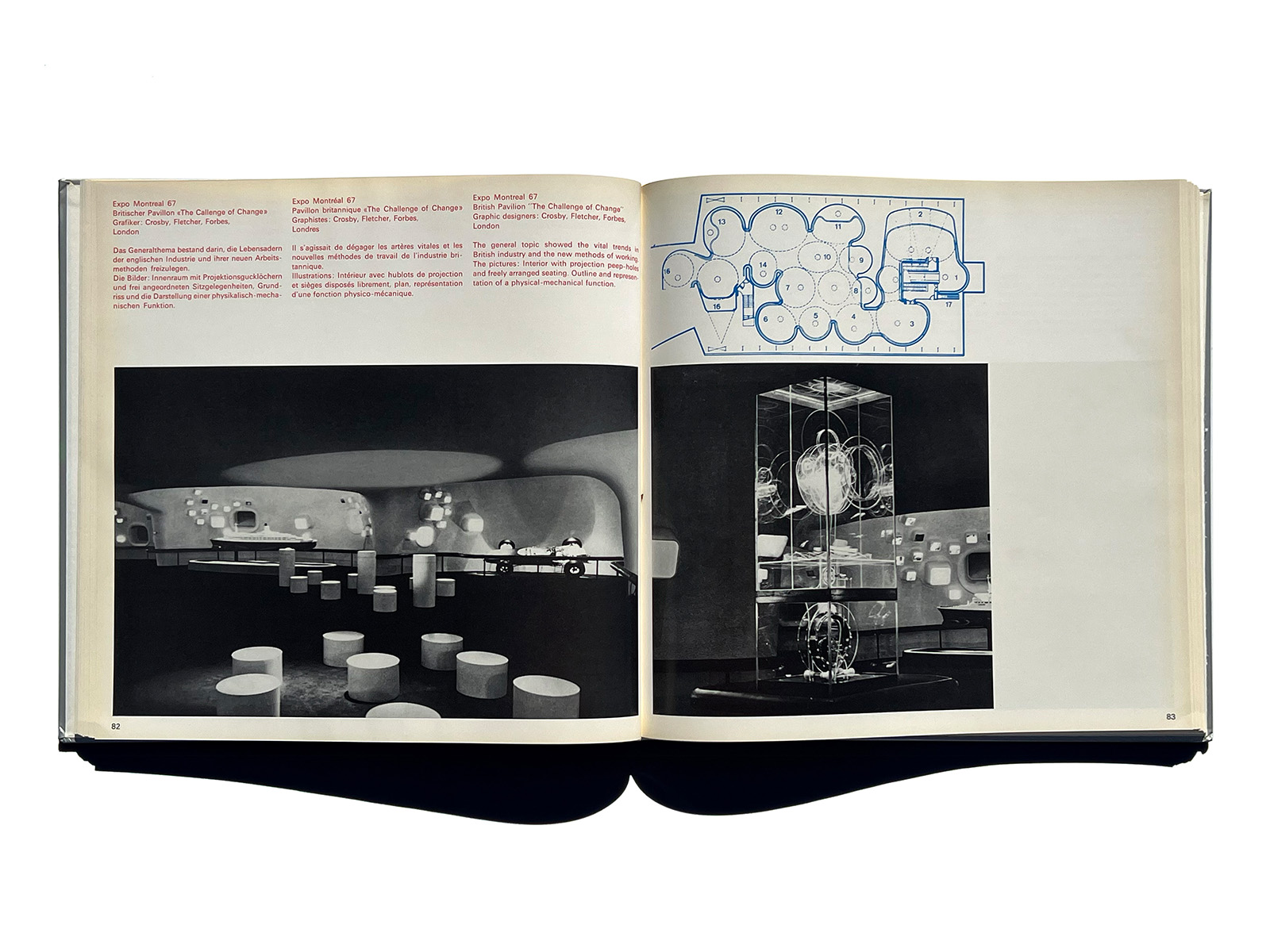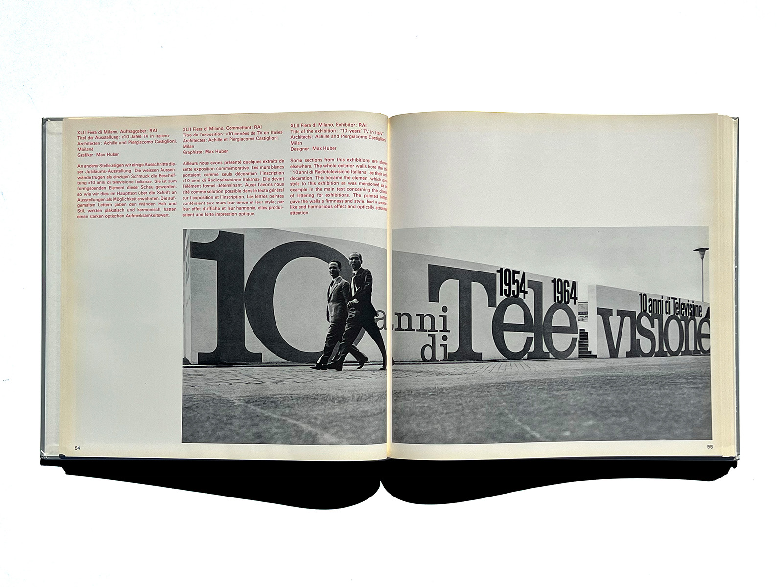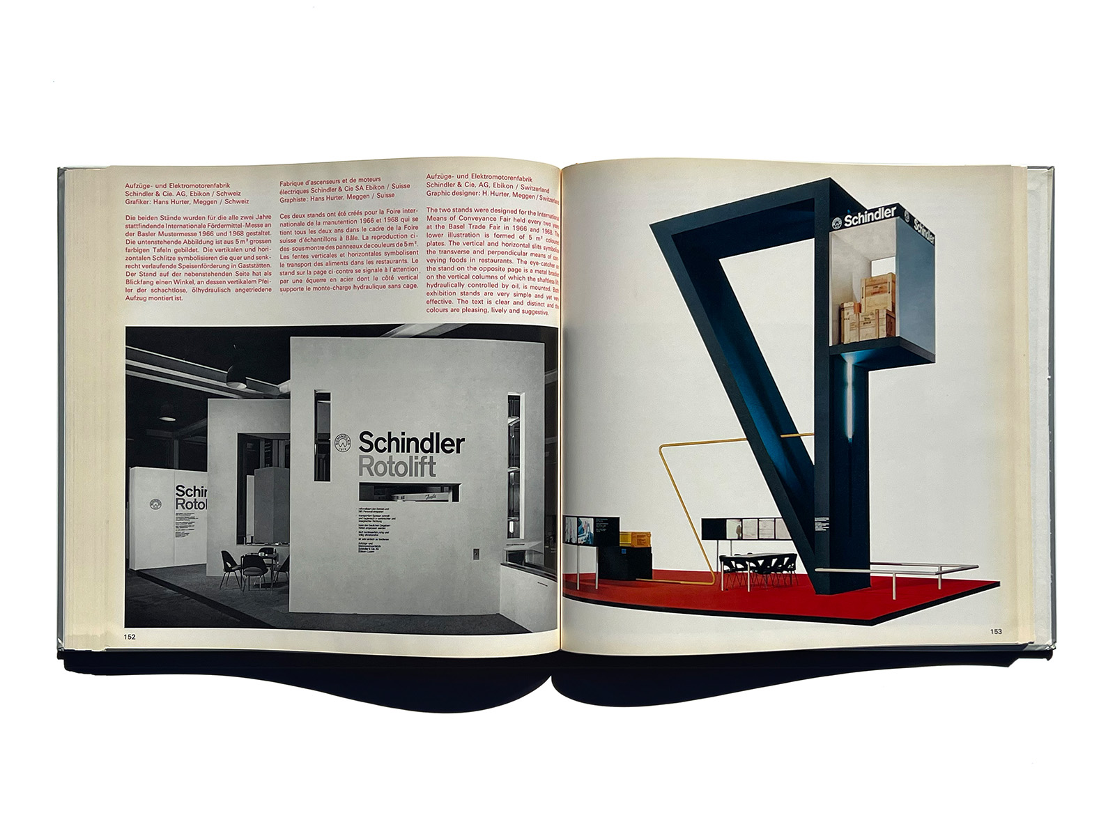 The book documents national pavilions, industrial displays, and corporate exhibitions from the 1950s–60s, combining architectural plans, spatial layouts, and rich photographic records. Presented in three languages, it captures how architecture, graphics, and industrial design merged into a unified exhibition language during one of the field’s most innovative periods.