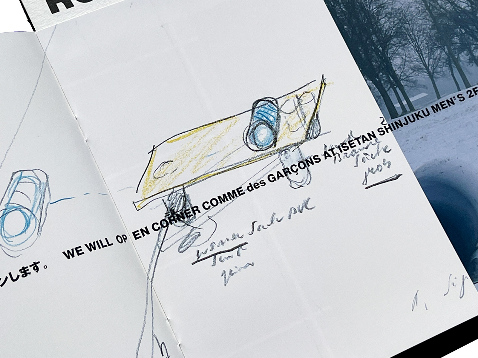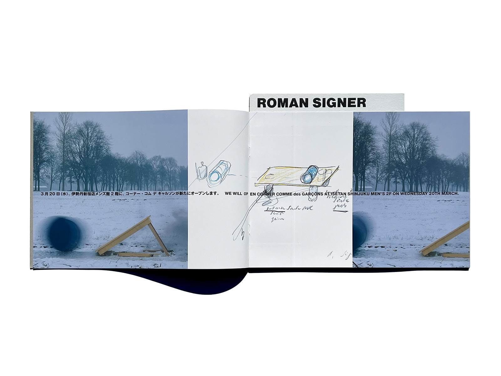 This booklet is part of the Direct Mail series created by Roman Signer for COMME des GARÇONS in 2024. It was produced to announce the opening of CORNER COMME des GARÇONS at Isetan Shinjuku, and unlike nationwide mailers, it was given only to a select group of Isetan clients. As a result, it is exceptionally rare.