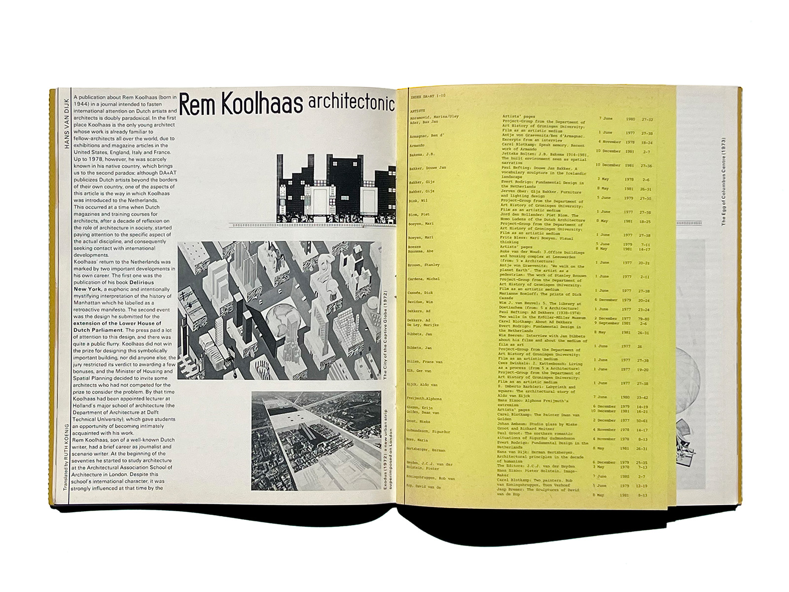 80年代のオランダの芸術と建築をテーマにしたジャーナル誌です。デザインはJan van Toornによるもので表紙はラベルのみ各号デザインが変わるというユニークなコンセプトです。