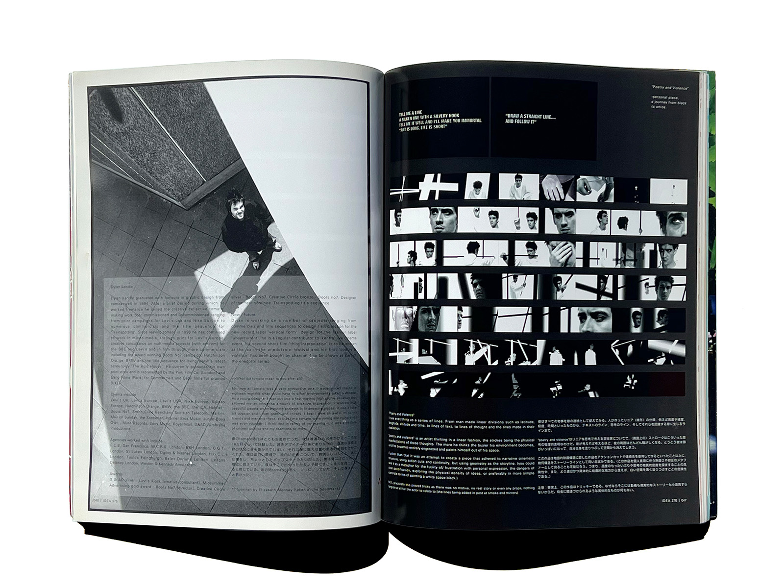 Dylan Kendle graduated in graphic design from camberwell in 1994. He joined Tomato in 1995, making work from print campaigns for Levi’s USA and Nike Europe to numerous commercials and the title sequence for Trainspotting. Since leaving Tomato in 1996 he has continued to work in mixed media, through print for Levi’s Europe, creative consultancy on multi-media projects for the BBC and Levi’s etc.