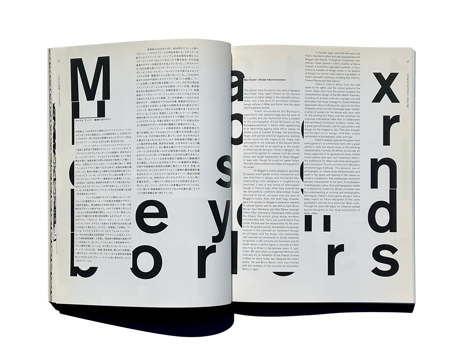 In fact, it spans over 100 pages of extensive reproductions and contributed essays, revealing numerous aspects of Max Huber that differ greatly from the image most people typically associate with his name.