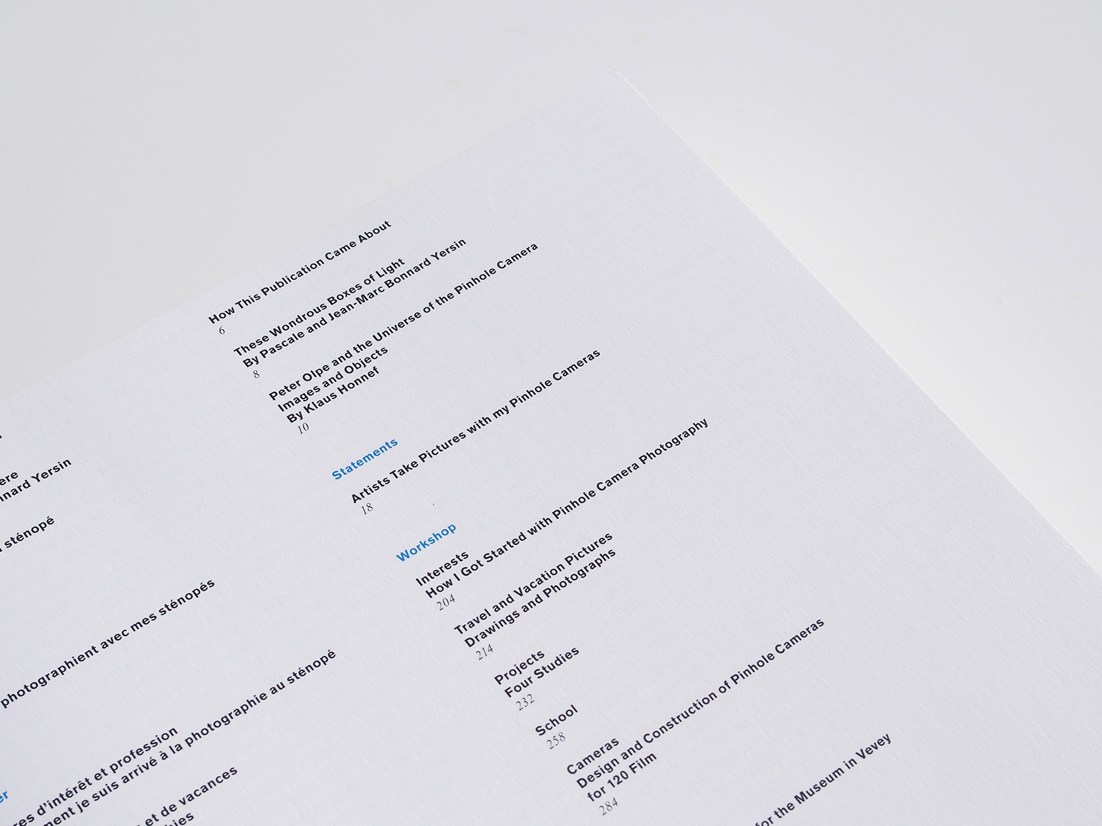 Peter Olpe, born in 1949, is a graphic designer, photographer, and illustrator. He taught at the Basel School of Design until his retirement in 2009. From the late seventies, Peter Olpe dealt with the design and construction of pinhole cameras for medium-format film. He realised photographic projects and showed and sold them in exhibitions or exchanged them for art. Olpe is also the author of several books on drawing and pinhole photography.