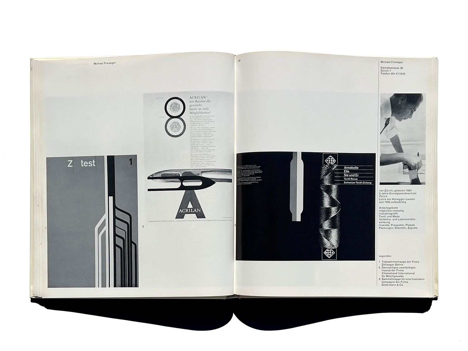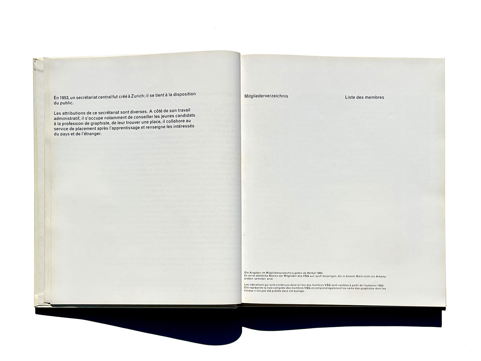 An important reference in the history of Swiss graphic design, this official directory documents 137 members of the VSG (Verband Schweizerischer Grafiker). Based on the 1959 membership, each designer is presented with illustrated work samples, contact information, and areas of specialization.