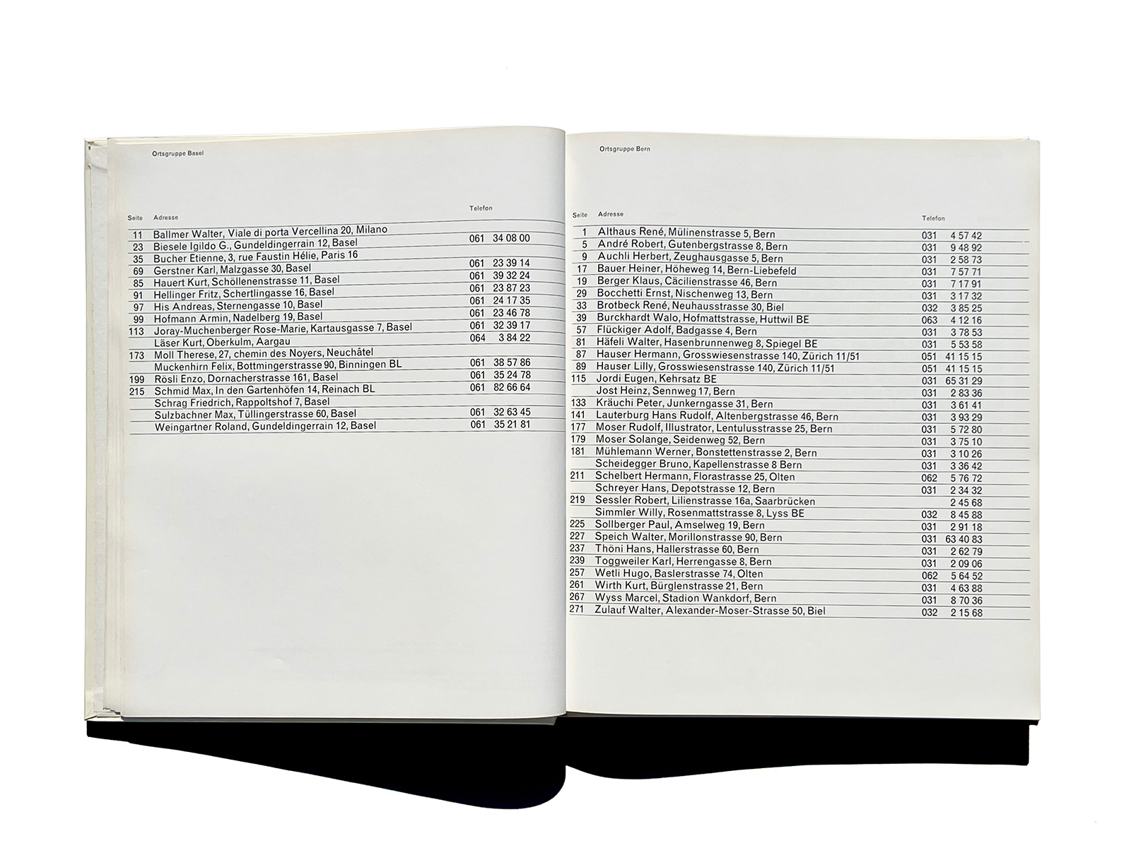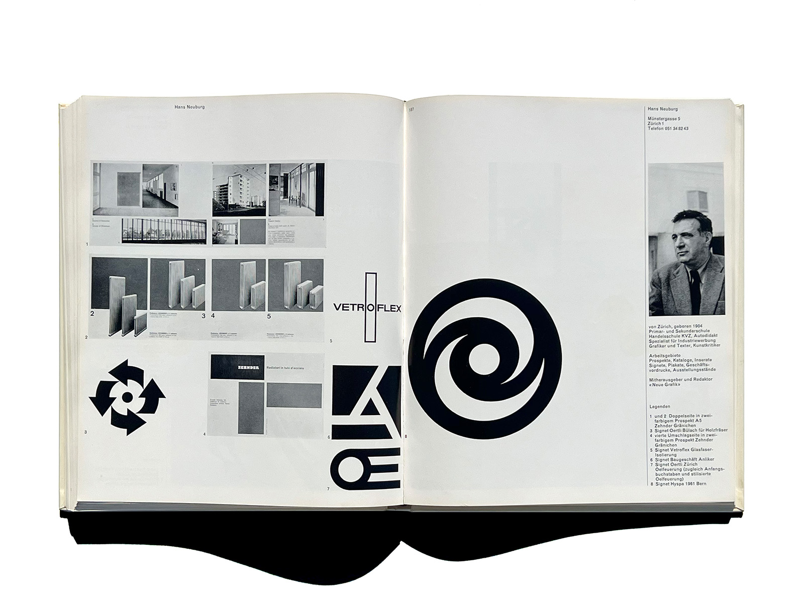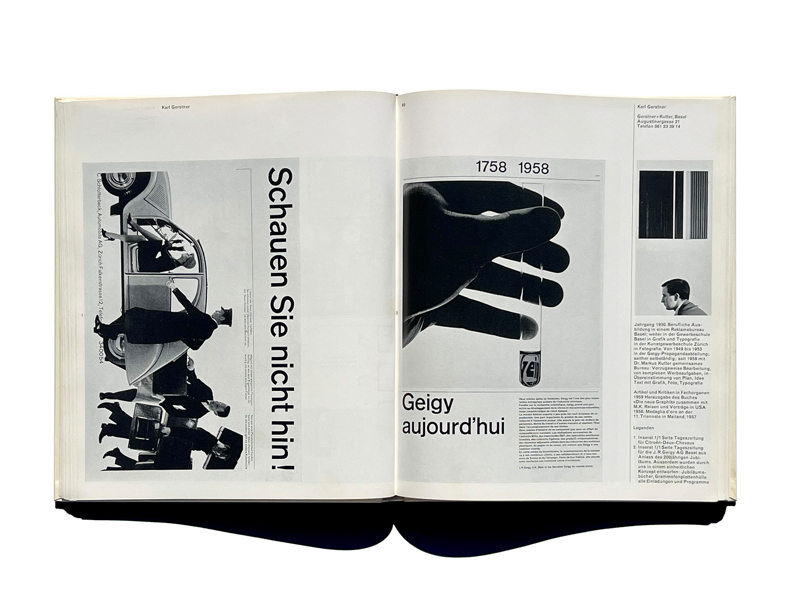 The volume includes many key figures of postwar Swiss graphic design—such as Karl Gerstner, Armin Hofmann, Josef Müller-Brockmann, Richard Paul Lohse, and Walter Herdeg—offering a rare, contemporaneous overview of the practitioners who shaped the formative period of the “Swiss Style.”