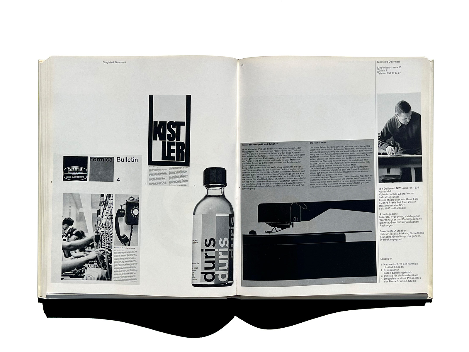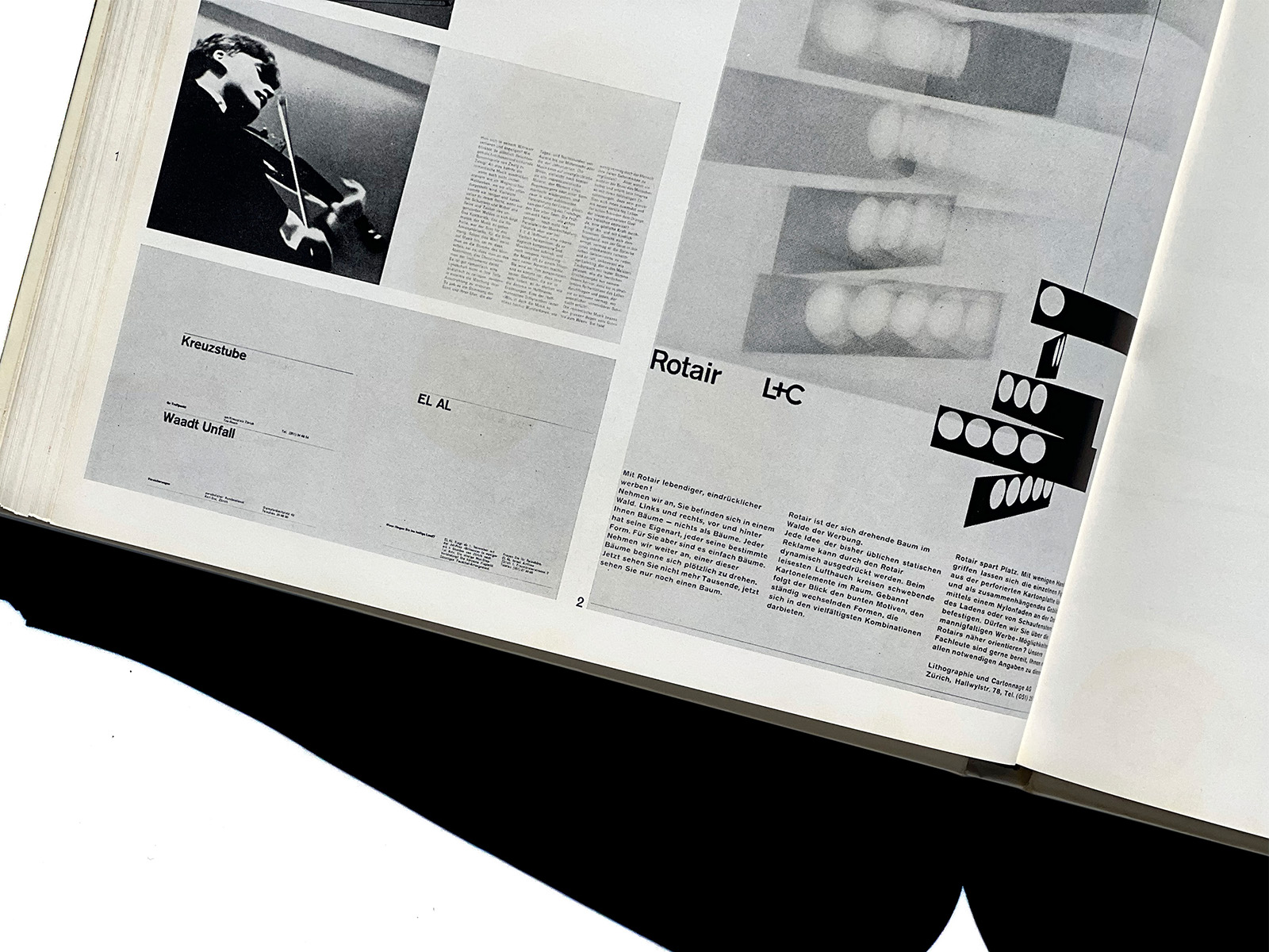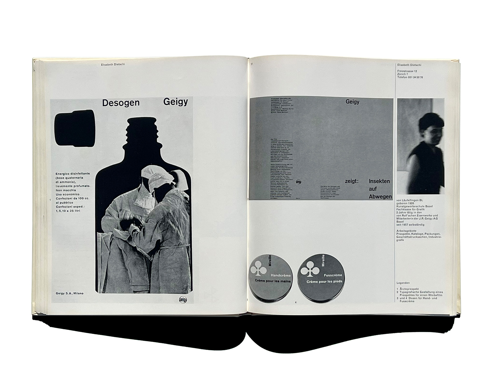 The volume includes many key figures of postwar Swiss graphic design—such as Karl Gerstner, Armin Hofmann, Josef Müller-Brockmann, Richard Paul Lohse, and Walter Herdeg—offering a rare, contemporaneous overview of the practitioners who shaped the formative period of the “Swiss Style.”