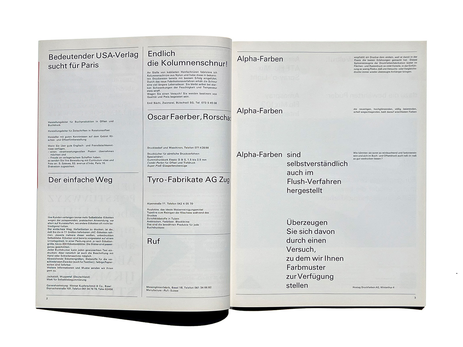 In 1948, TM merged with the French-Swiss magazine ‘‘Revue suisse de l’Imprimerie’’ (Swiss Printing Journal), RSI. Founded in 1923 by Emile Guggi, Lausanne, under the name ’‘Revue suisse de l’Imprimerie et des Industries annexes’’ (Swiss Journal of Printing and Related Industries).