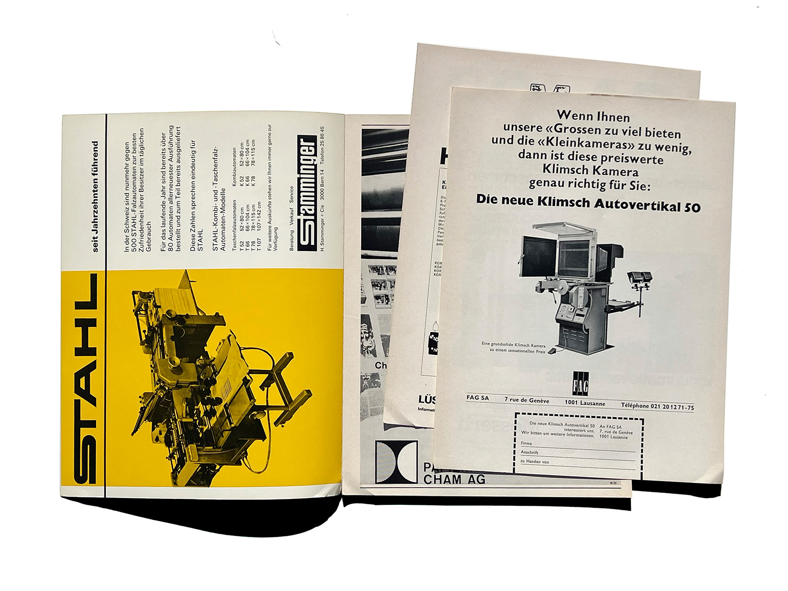 In 1948, TM merged with the French-Swiss magazine ‘‘Revue suisse de l’Imprimerie’’ (Swiss Printing Journal), RSI. Founded in 1923 by Emile Guggi, Lausanne, under the name ’‘Revue suisse de l’Imprimerie et des Industries annexes’’ (Swiss Journal of Printing and Related Industries).