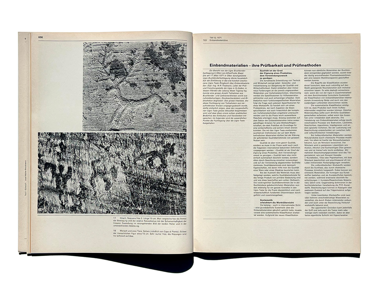 Typographische Monatsblätter (Typographic Monthly Sheets), TM, was founded in 1933 by the ‘‘Schweizerischer Typographenbund, Bern’’ (Swiss Typographic Society, Bern).
