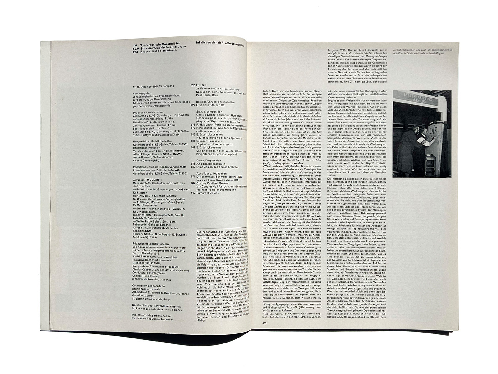 Typographische Monatsblätter (Typographic Monthly Sheets), TM, was founded in 1933 by the ‘‘Schweizerischer Typographenbund, Bern’’ (Swiss Typographic Society, Bern).