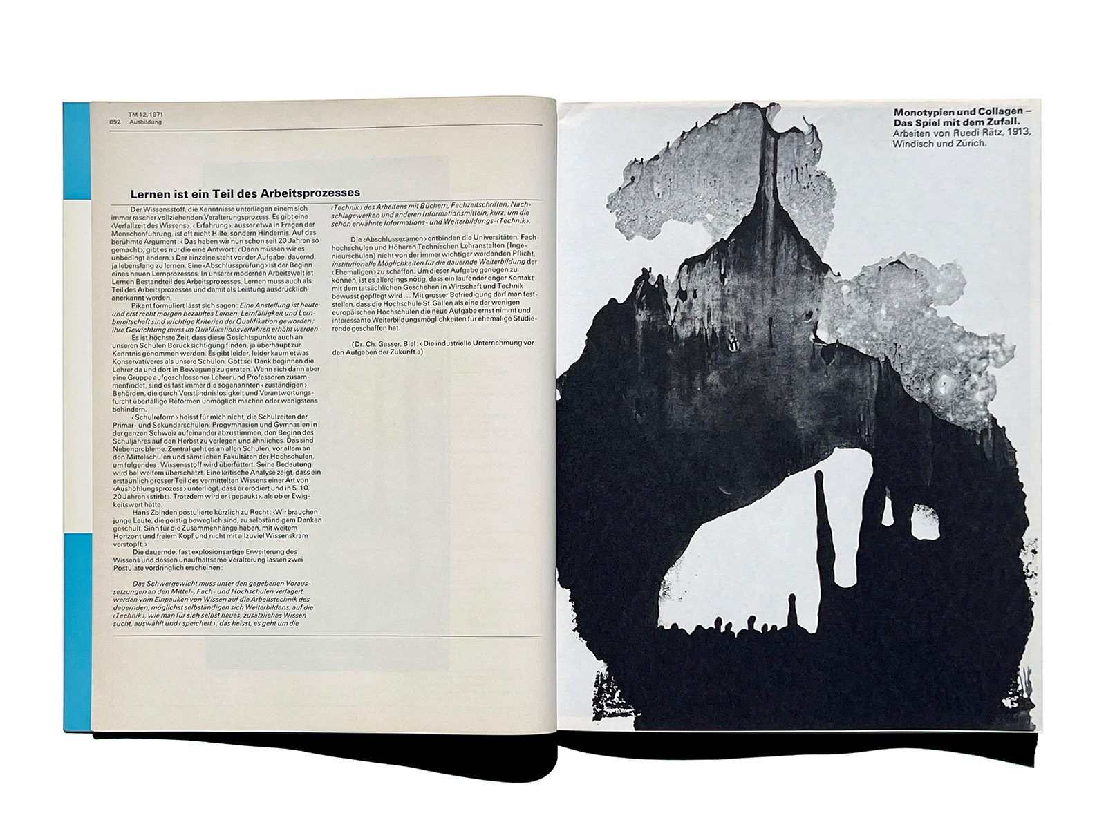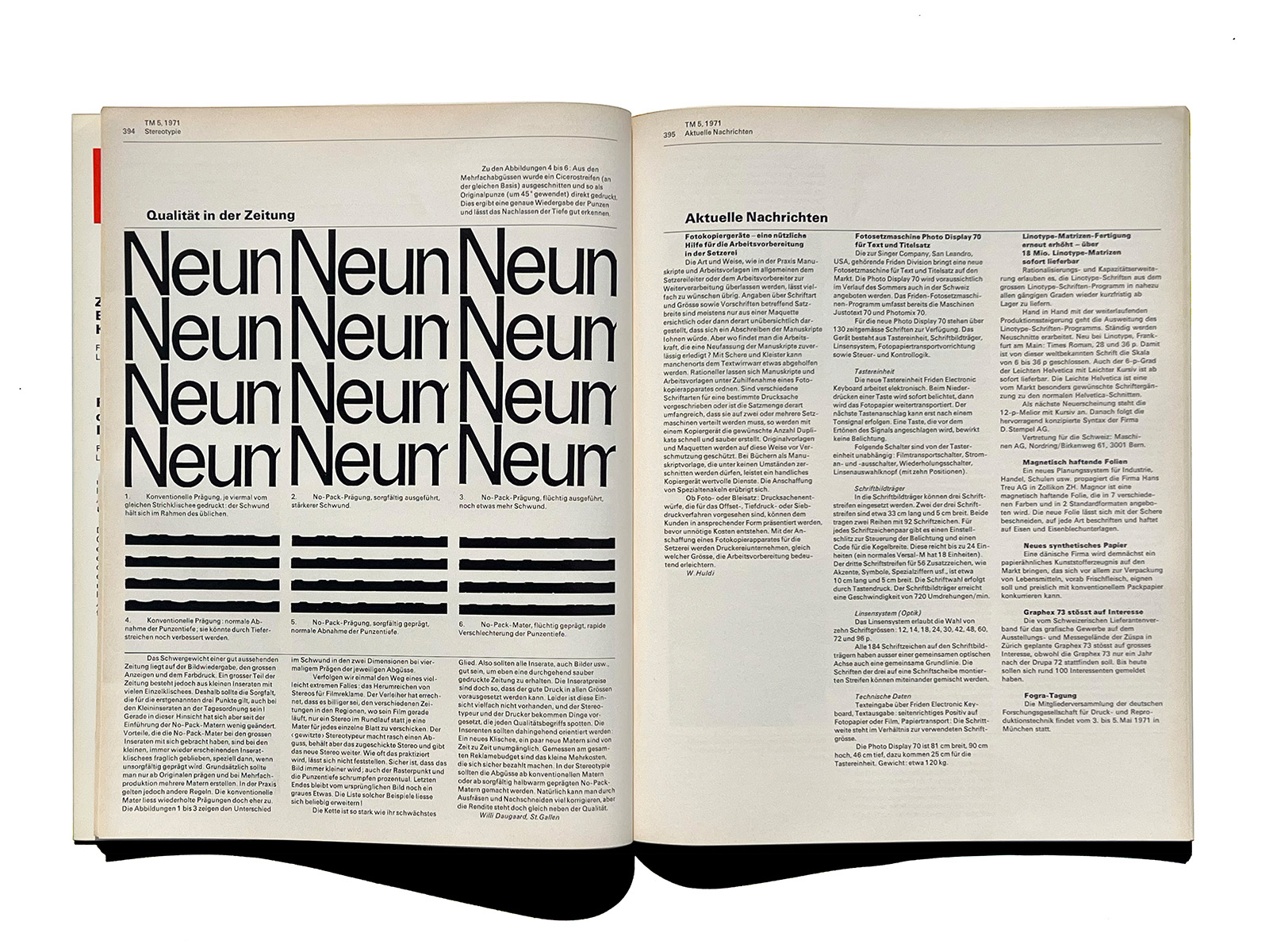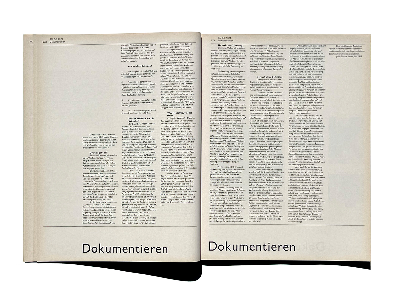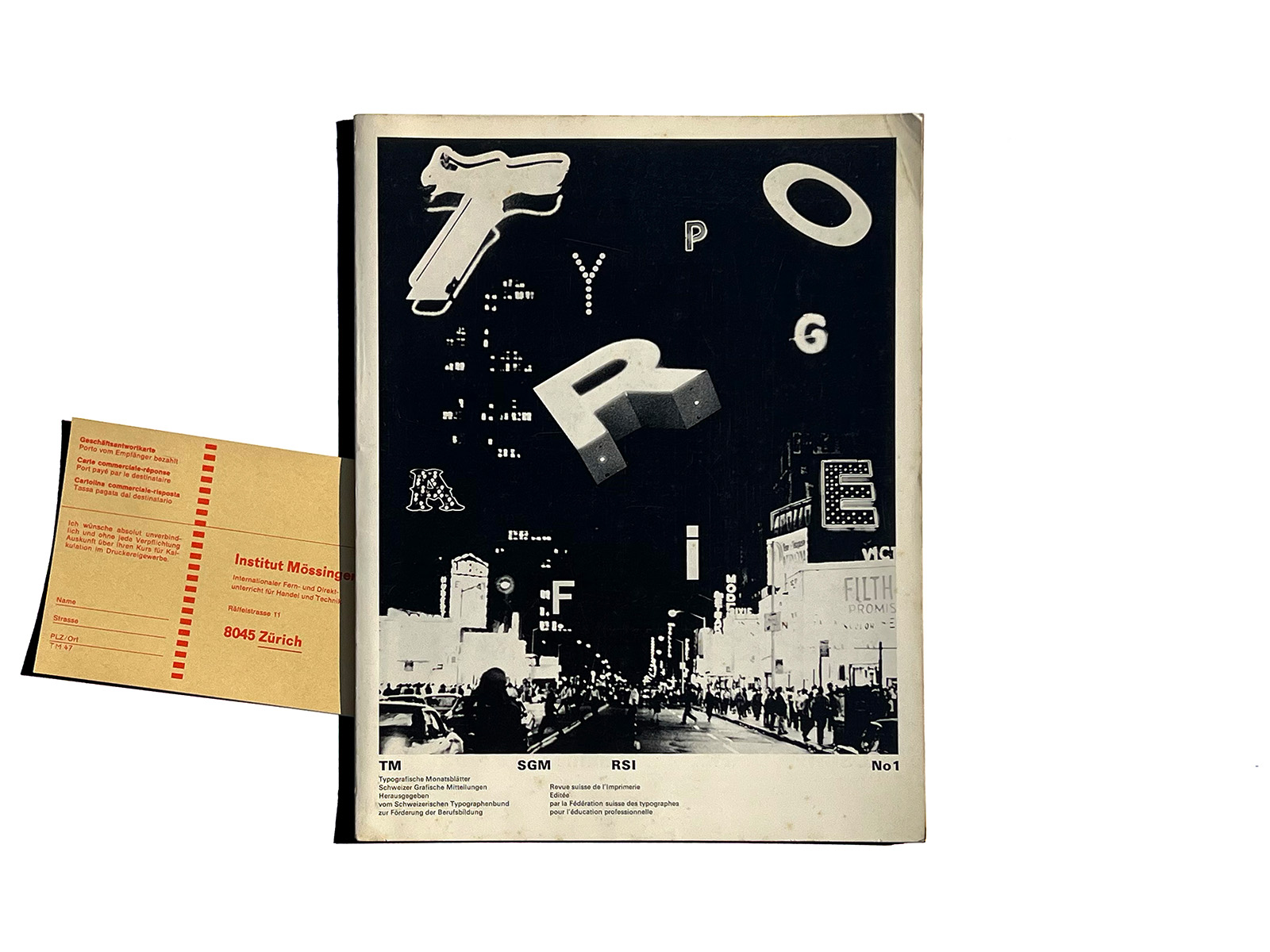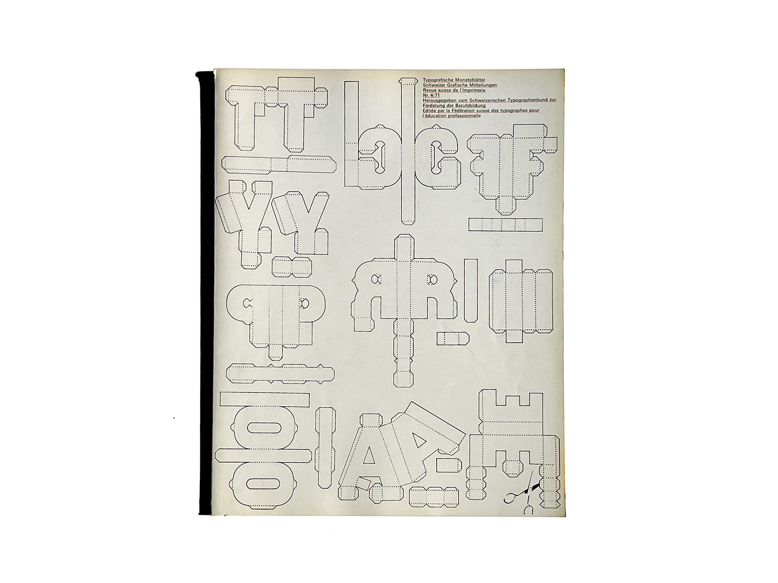 Typographische Monatsblätter (Typographic Monthly Sheets), TM, was founded in 1933 by the ‘‘Schweizerischer Typographenbund, Bern’’ (Swiss Typographic Society, Bern).