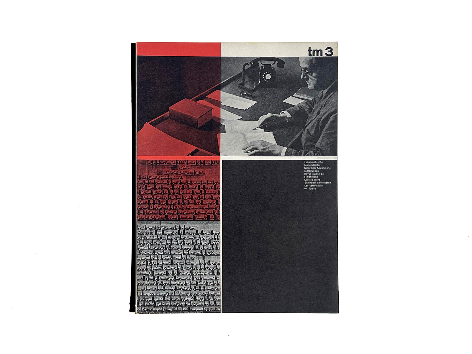 Typographische Monatsblätter (Typographic Monthly Sheets), TM, was founded in 1933 by the ‘‘Schweizerischer Typographenbund, Bern’’ (Swiss Typographic Society, Bern).