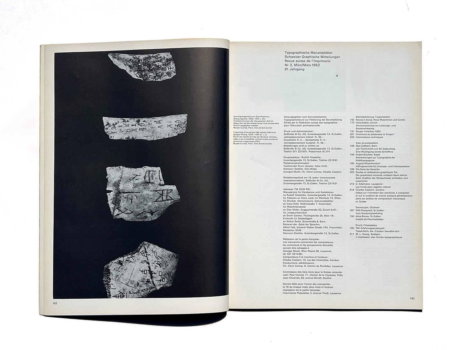 Typographische Monatsblätter (Typographic Monthly Sheets), TM, was founded in 1933 by the ‘‘Schweizerischer Typographenbund, Bern’’ (Swiss Typographic Society, Bern).