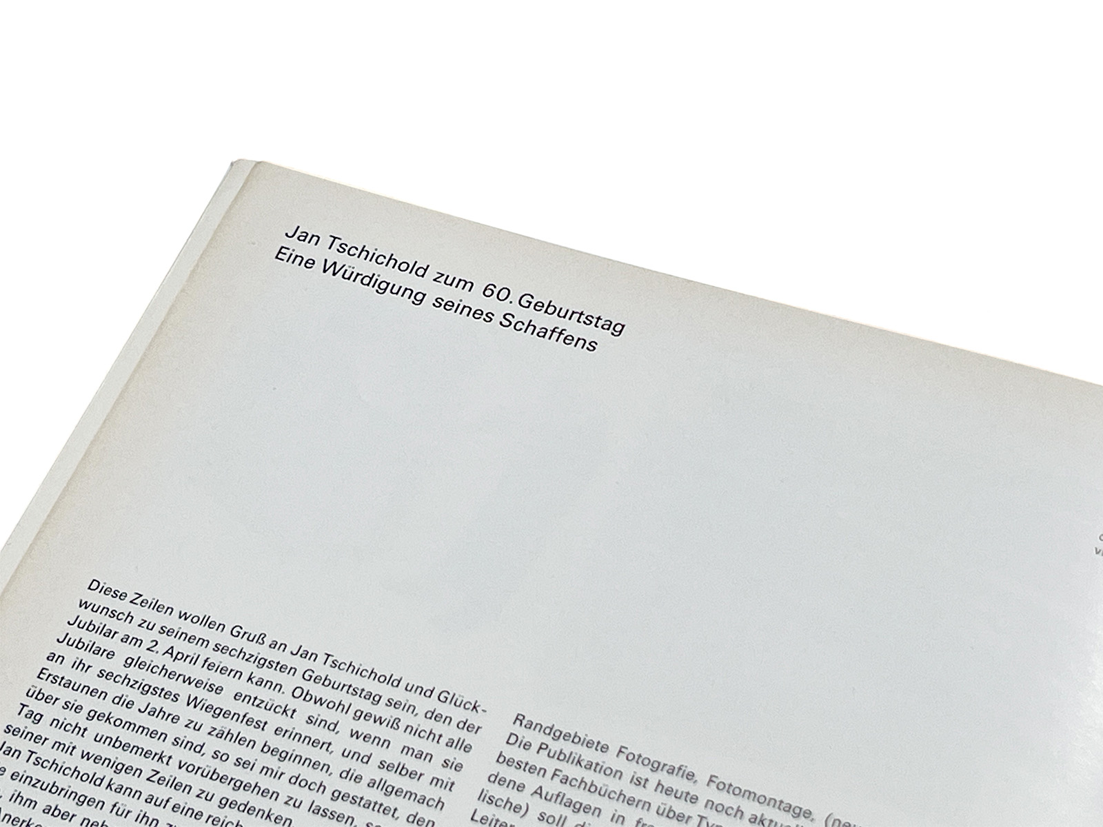 1932年10月、銀色の表紙の見本号(通称「シルバー号」)が発行されました。そのタイトルは『Typographische Monatsblätter zur Förderung der Berufsbildung』(職業訓練促進のためのタイポグラフィック・マンスリー・ジャーナル)でした。