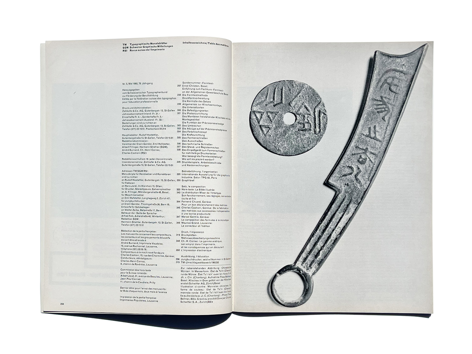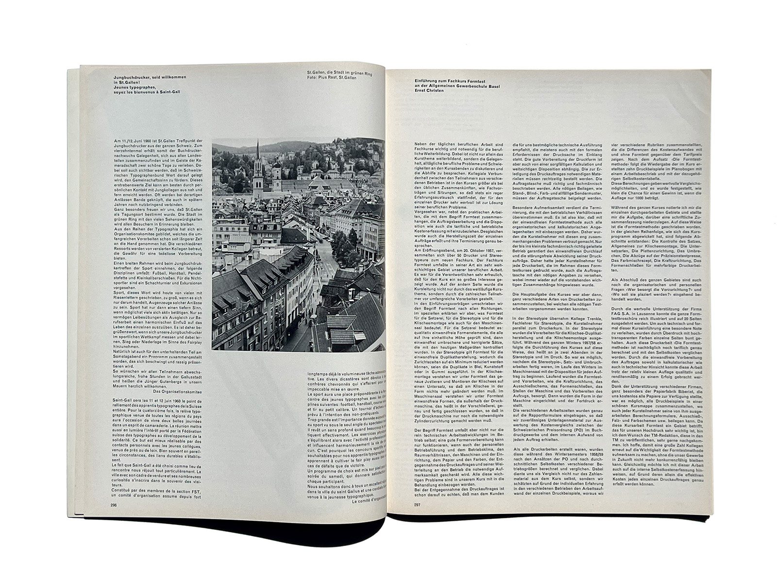 Typographische Monatsblätter (Typographic Monthly Sheets), TM, was founded in 1933 by the ‘‘Schweizerischer Typographenbund, Bern’’ (Swiss Typographic Society, Bern).