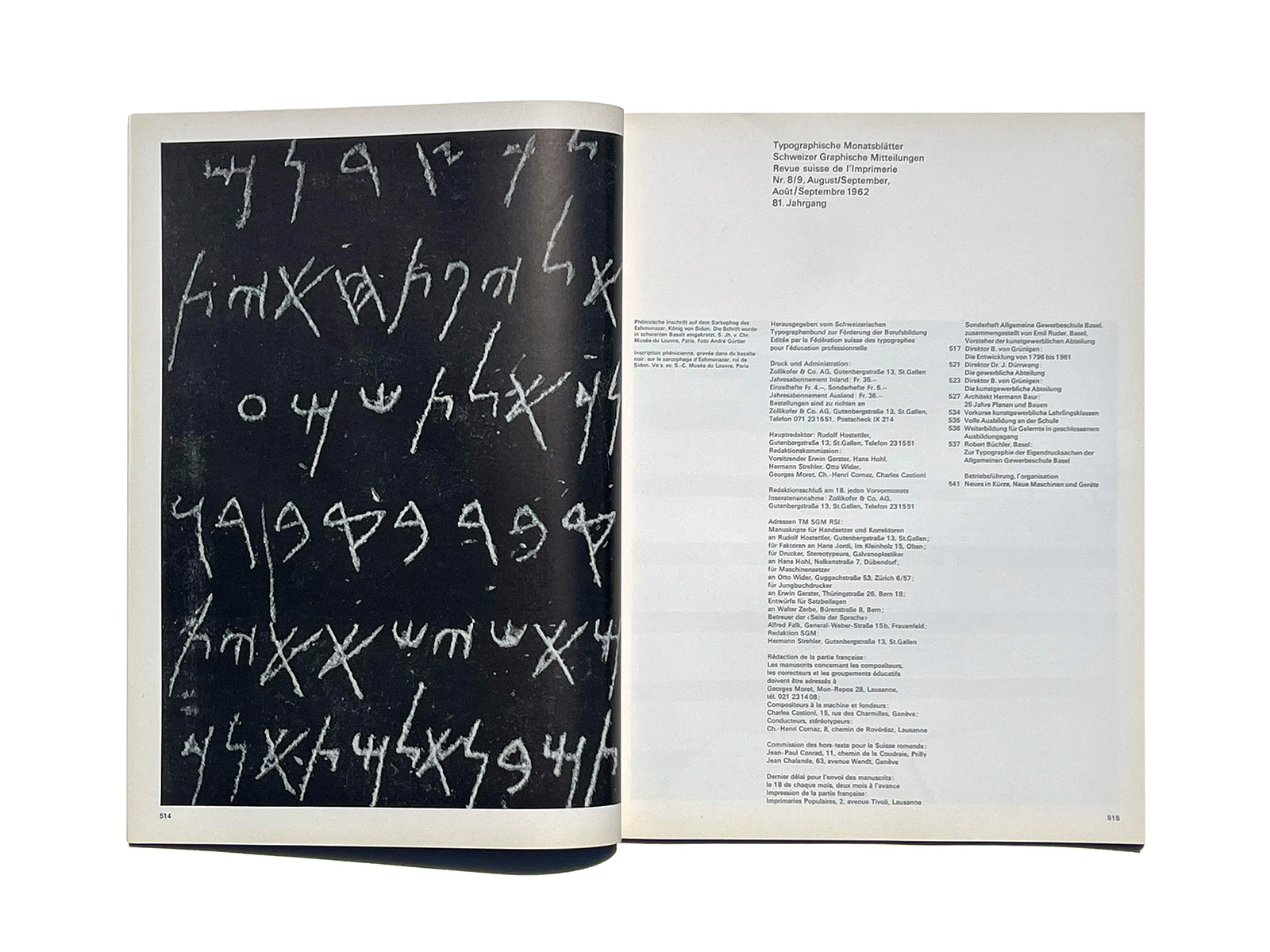 Typographische Monatsblätter (Typographic Monthly Sheets), TM, was founded in 1933 by the ‘‘Schweizerischer Typographenbund, Bern’’ (Swiss Typographic Society, Bern).
