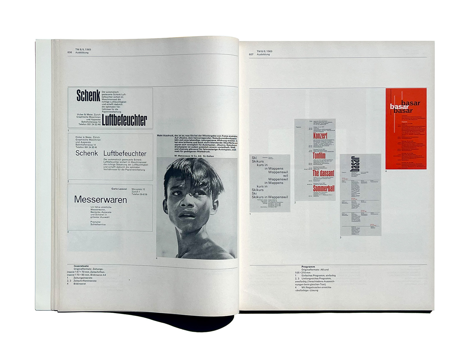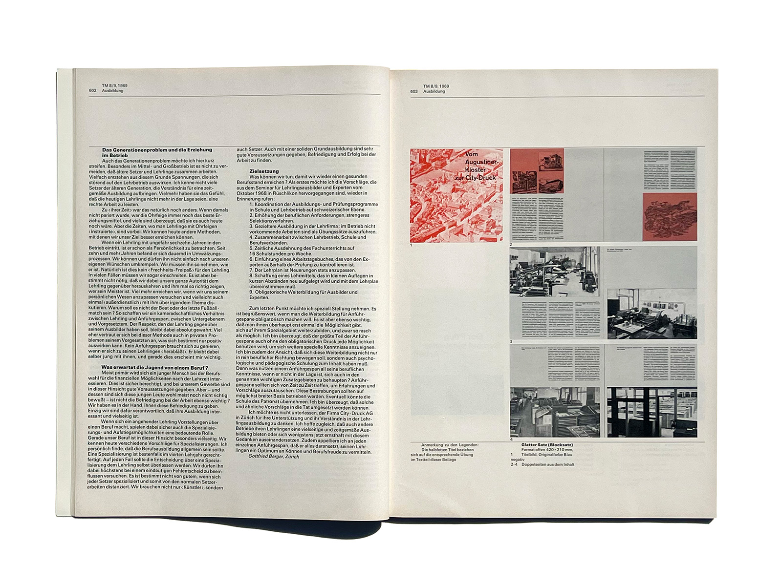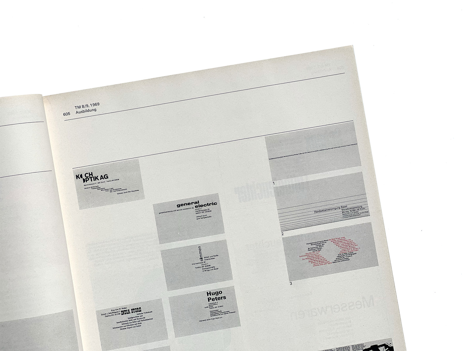 Typographische Monatsblätter (Typographic Monthly Sheets), TM, was founded in 1933 by the ‘‘Schweizerischer Typographenbund, Bern’’ (Swiss Typographic Society, Bern).
