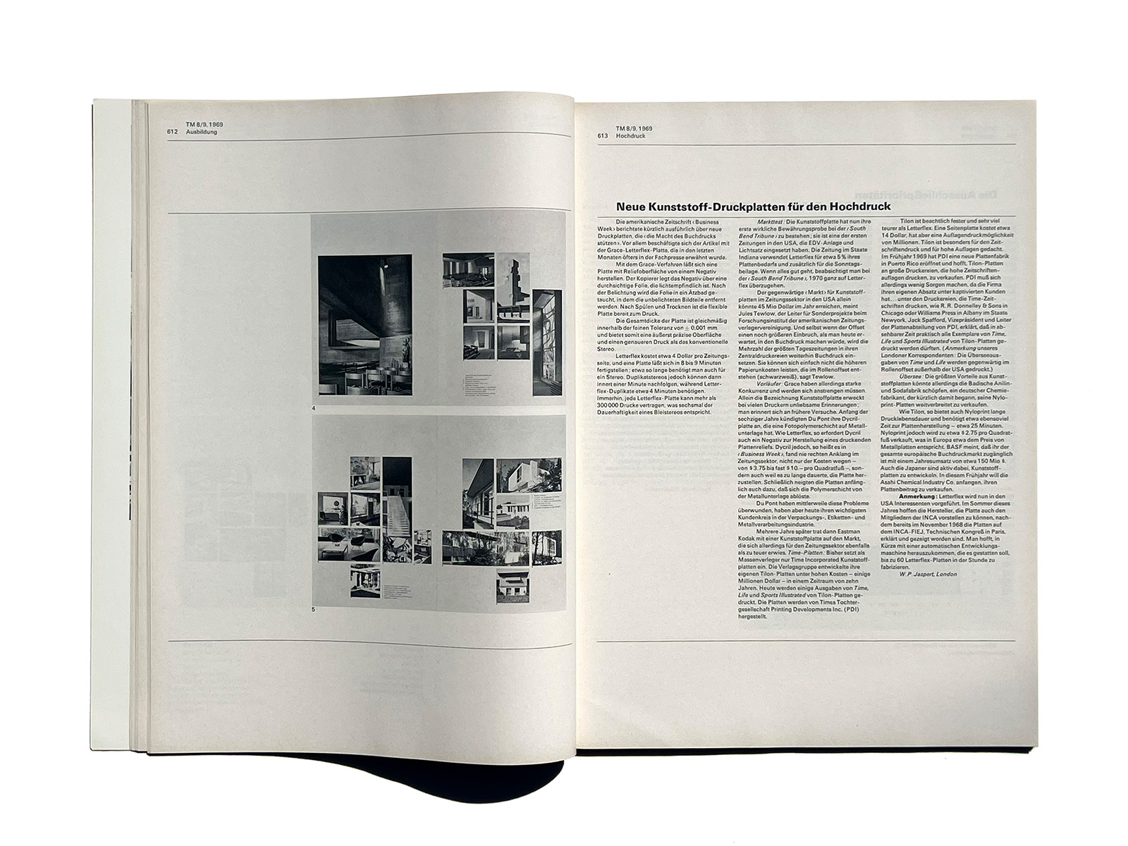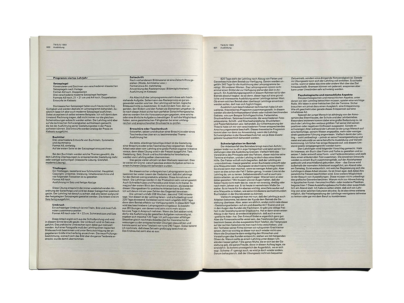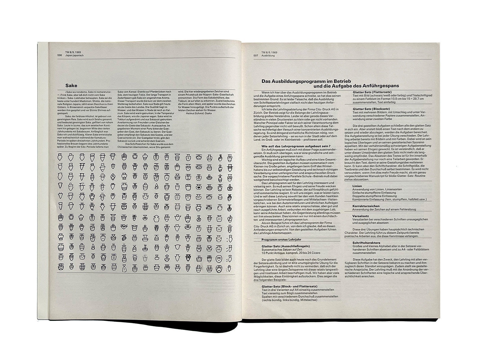 Typographische Monatsblätter (Typographic Monthly Sheets), TM, was founded in 1933 by the ‘‘Schweizerischer Typographenbund, Bern’’ (Swiss Typographic Society, Bern).