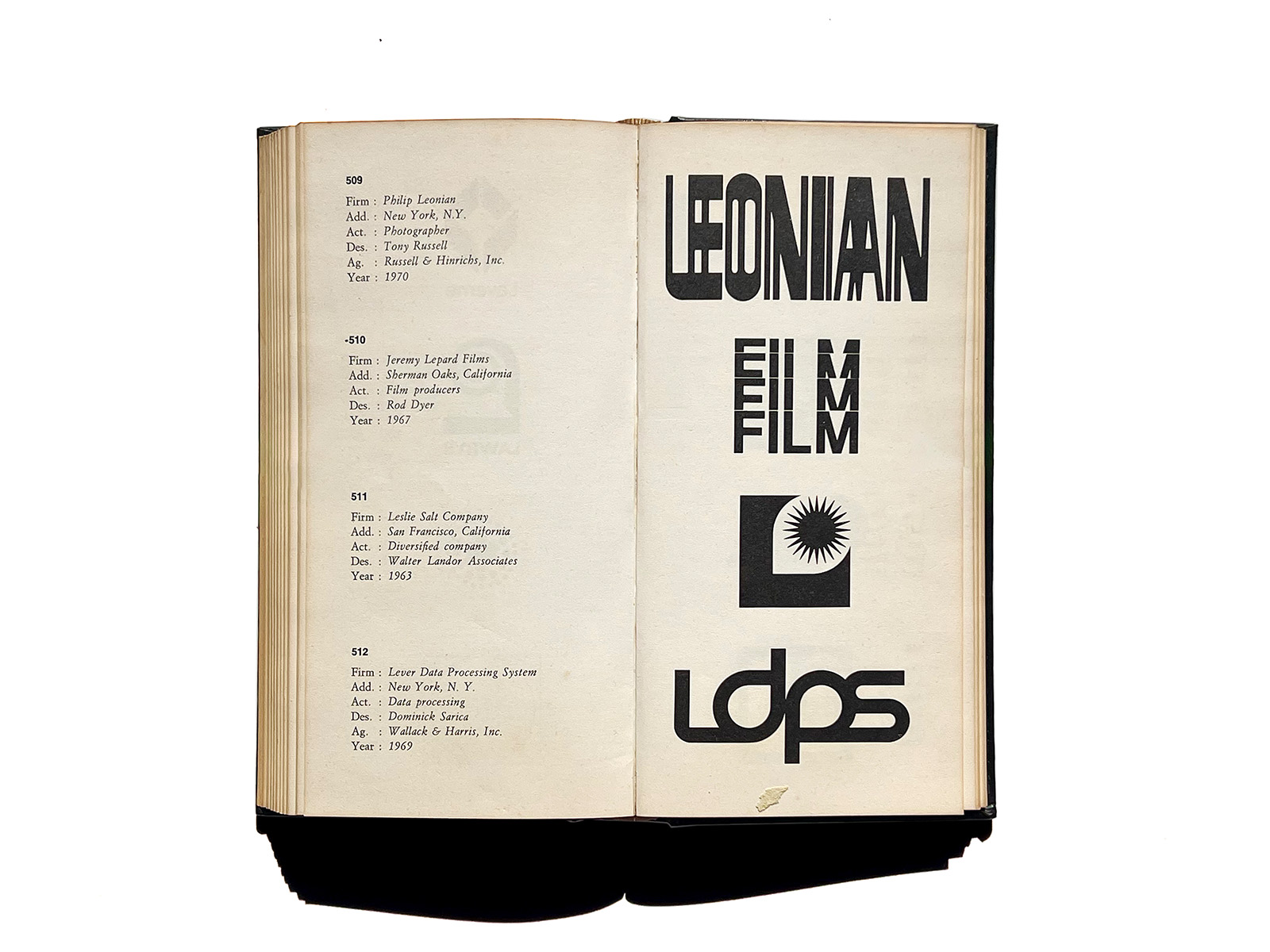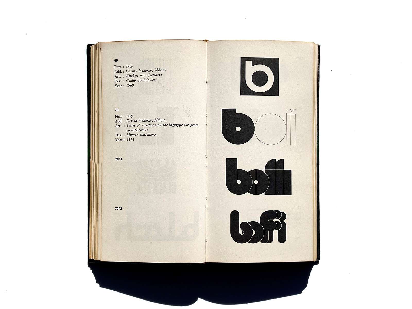 Produced through the collaboration of Franco Maria Ricci, Corinna Ferrari, and the Italian publisher Deco Press, the series presents a remarkably diverse spectrum of marks: from geometric constructions to approaches that feel unexpectedly fresh even today. Rather than focusing solely on the major global corporations familiar now, these volumes highlight a wide range of visual strategies and lesser-known identities. Each logo is accompanied by the essential credits, including designer names and dates.