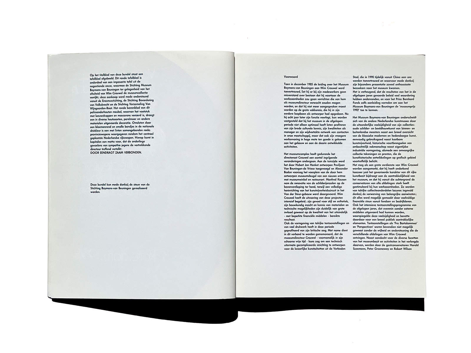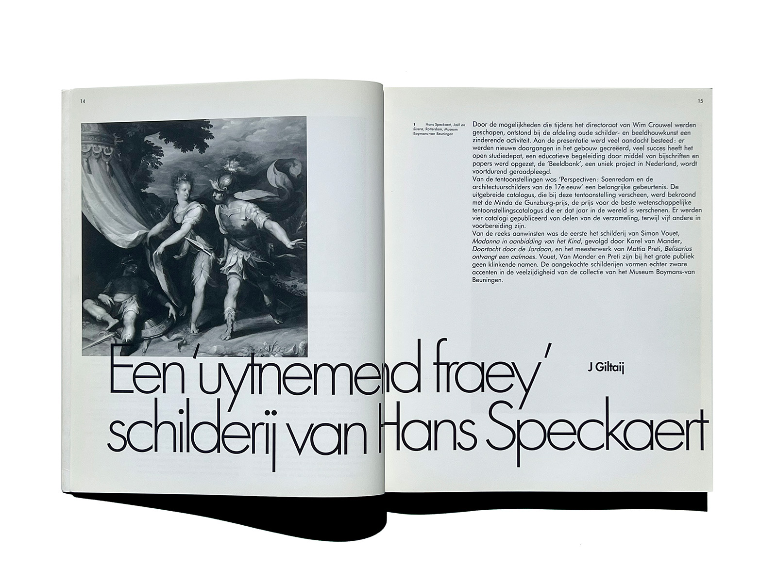 ロッテルダムのBoymans-Van Beuningen美術館エキシビションカタログです。デザインは8voによるもので、B-VBカタログ史上で最も実験的な一冊です。蘭独語のバイリンガル併記となり、力強いBoldウェイトのテキストとページナンバーと写真レイアウトに惹きこまれます。