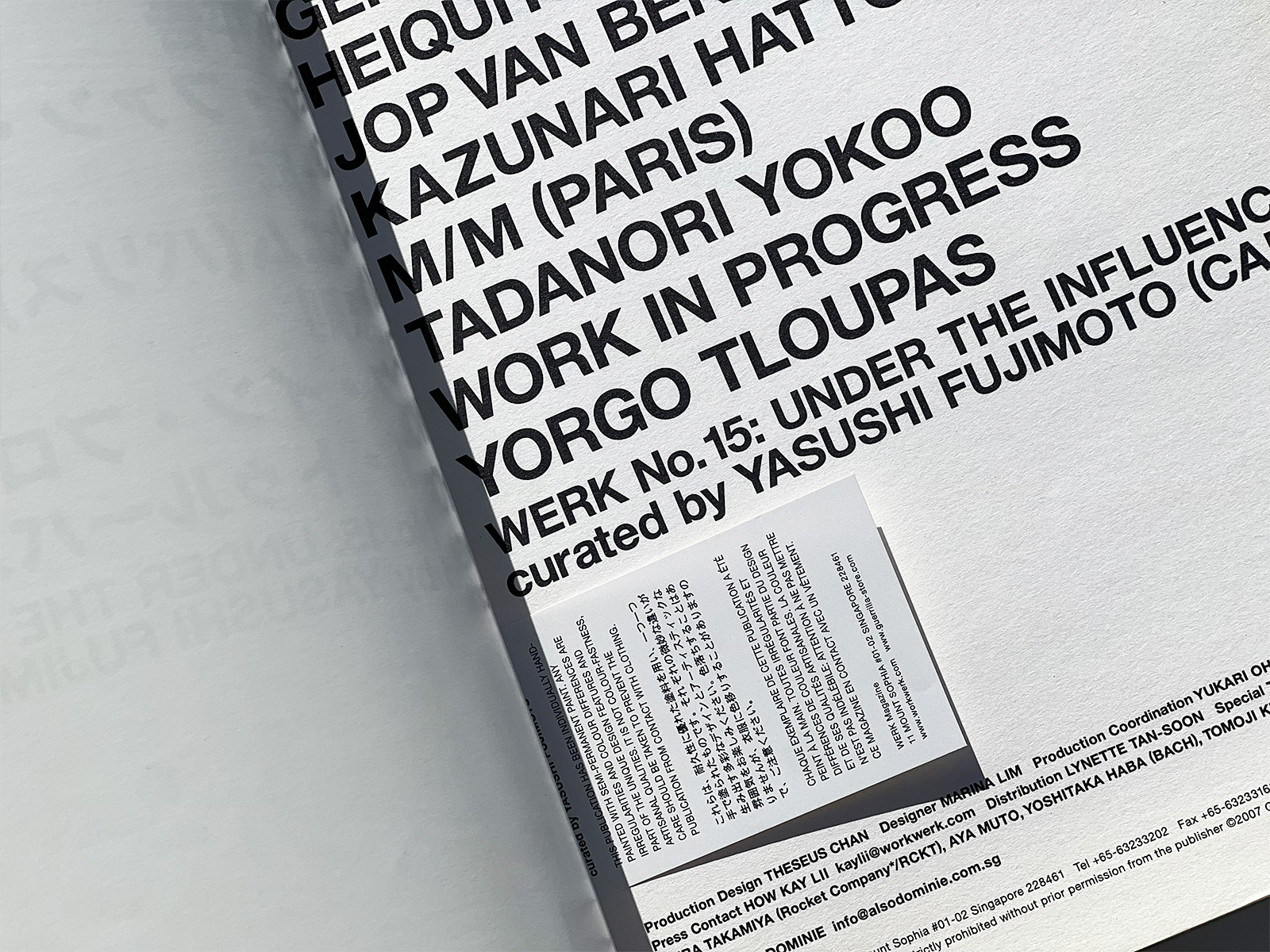Published from Singapore, WERK No. 15 was produced in conjunction with the 2007 exhibition “WELCOME TO MAGAZINE POOL / 10 Cross-Border Magazine Designers” held at Ginza Graphic Gallery.